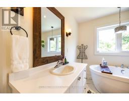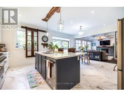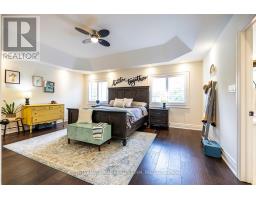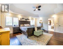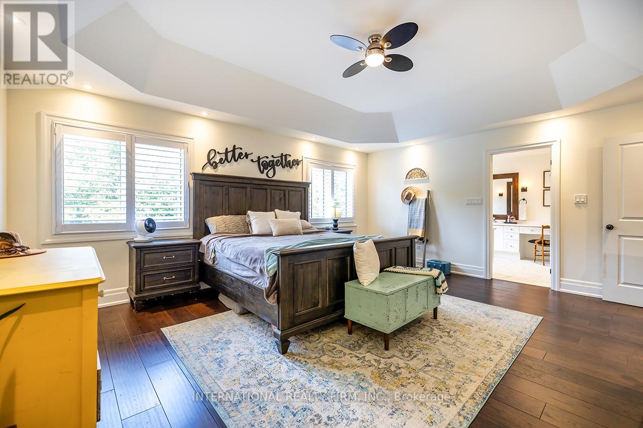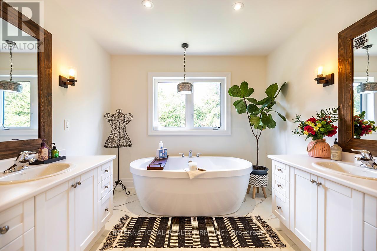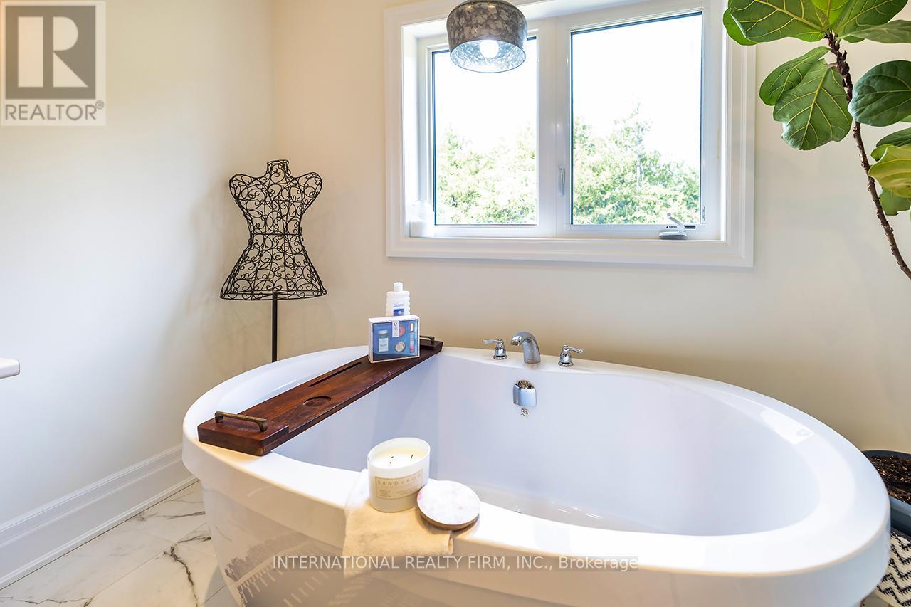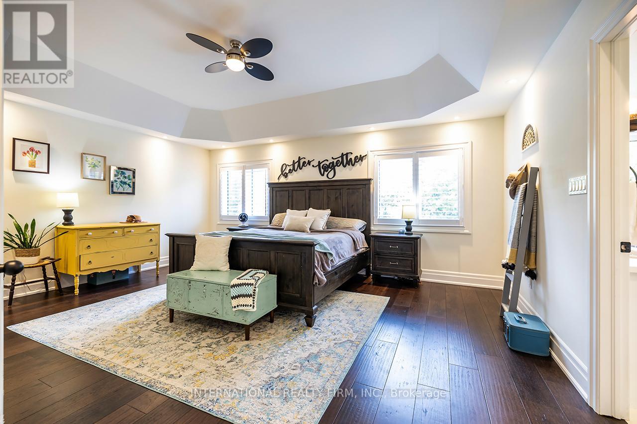 Welcome to 82 Hennessey Crescent, an executive residence in the family-oriented neighbourhood of Ravines of Lindsay. Built in 2022 and ideally positioned on a premium ravine lot backing onto Jennings Creek, this home offers 3,110 sq ft of refined living space and seemlessly blends thoughtful design with upscale finishes throughout. The main level showcases a seamless open-concept layout, highlighted by wide-plank hardwood flooring, a gas fireplace with stone surround and walnut mantle, and expansive windows that frame the private ravine setting. The kitchen is both stylish and functional, featuring quartz countertops, a marble backsplash, and upgraded appliances, ideal for everyday living and effortless entertaining. Upstairs, four generously sized bedrooms each enjoy access to a bathroom. The primary suite offers a tray ceiling, dual walk-in closets, and a well-appointed 5-piece ensuite. A second-floor laundry room adds convenience to the home's practical layout. Additional features include California shutters, a custom tray ceiling in the great room, wrought iron door inserts, and an extra-long driveway with no sidewalk. The fully fenced backyard provides a private outdoor retreat, complete with a hot tub, garden shed, and ample space to bring future plans to life. A polished, move-in ready home offering comfort, privacy, and a quiet connection to nature. (id:61423)