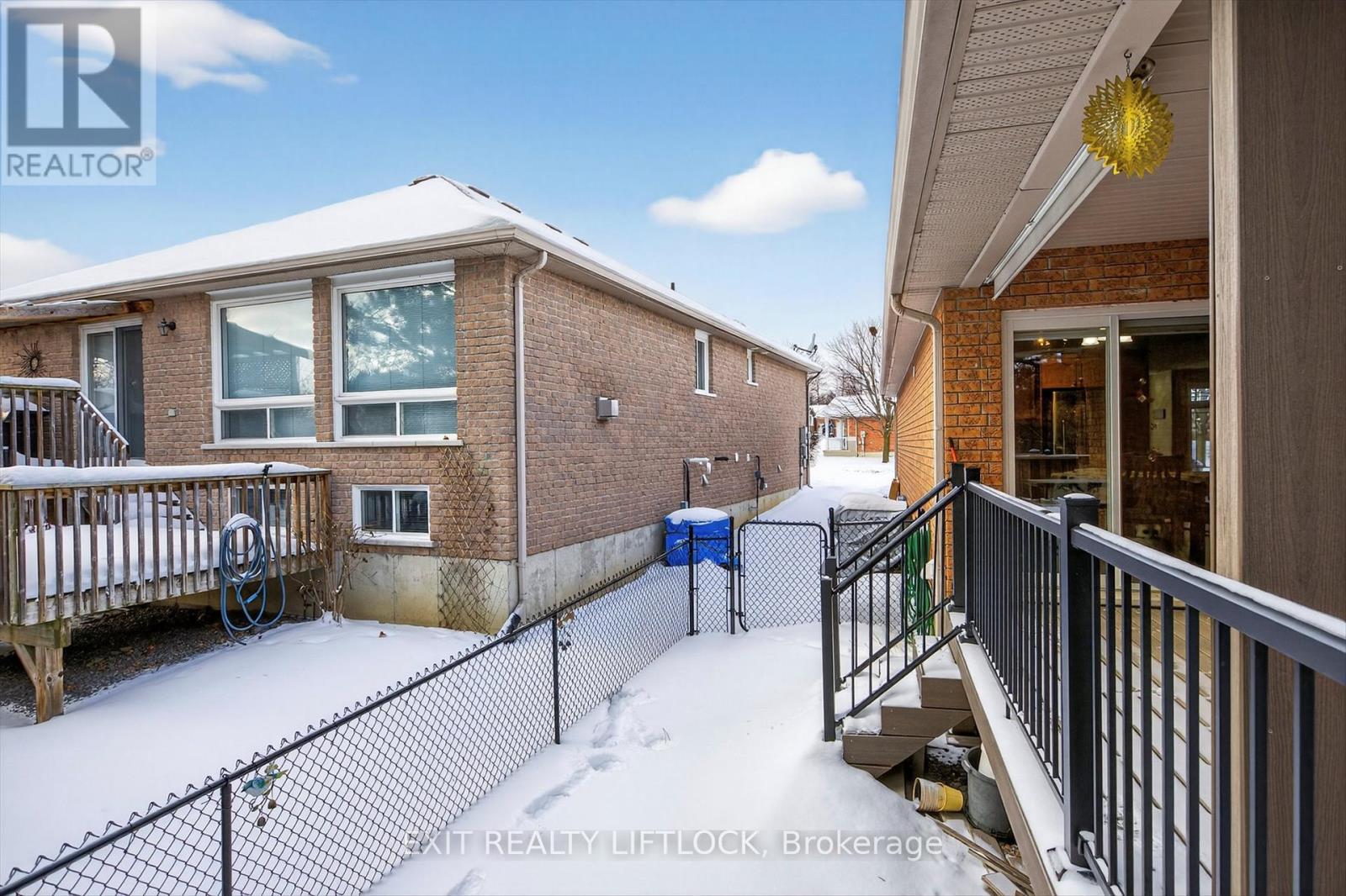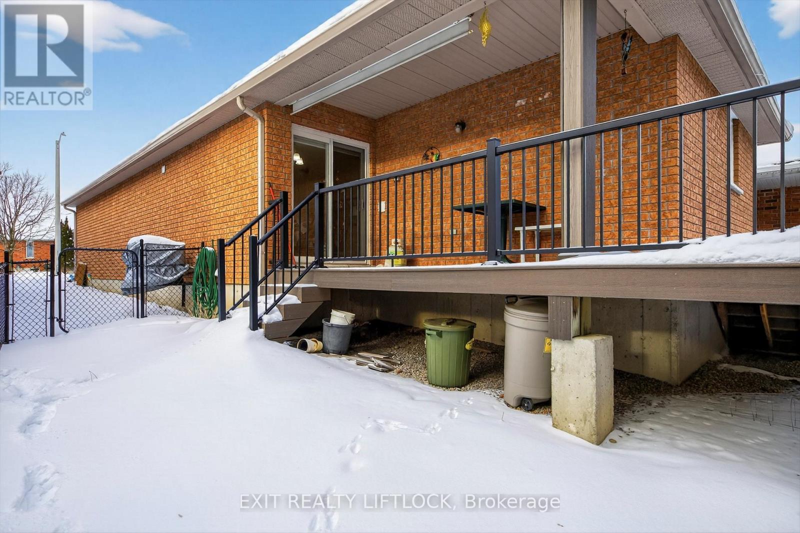 Charming two bedroom, two bath bungalow in southwest Peterborough, offering the potential for main floor living. A quiet desirable neighborhood close to all amenities. Open concept main floor, access to the attached garage in the entry foyer. The large living area, with laminate flooring and large windows providing natural light, leads into the kitchen/dining area. Patio door open to the composite deck along the side and back of the house. The deck is partially covered, allowing for both shade and sunshine. Two bedrooms, a 4 piece bath and laundry complete the main floor. The lower level has a large rec room, a separate den area, and a second bathroom. There is a good-sized utility room and storage area. The small rear yard is fully fenced. Wentworth Park is a few steps away and allows easy access to Lansdowne St at the Parkway. Close to shopping, restaurants, hospital, and highway access. Perfect for retirees or first-time home buyers. Well maintained and move-in ready. Quick closing available. (id:61423)