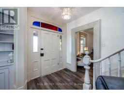 Step into timeless elegance, with this beautifully restored, circa-1850 estate, offering approx 2,873 sq ft of thoughtfully updated living space while preserving rich historical details. Situated on a beautifully landscaped approx 1.9 acre lot with a circular driveway, the home welcomes you with a charming covered front porch and a peaceful back porch, perfect for relaxing. Inside, features abound including wide wood trim, ornate staircase embellishments, vintage door handles, & a stunning stained glass window above the front door - all meticulously maintained. Upstairs, wide-plank wood flooring adds rustic character to all 4 good-sized bdrms. The updated kitchen is the heart of the home, featuring quartz counters, a tasteful tile backsplash, stainless steel appliances, and a large pantry cupboard. It flows effortlessly into a generous-sized dining room with a shiplap accent wall and walk-out to the porch, ideal for entertaining. The living rm offers built-in shelving and classic wainscoting, while a separate family rm, with a custom b/i desk can serve as a cozy retreat or a home office. Main floor laundry rm includes ample cabinetry and a walk-in closet. The primary bedroom boasts two walk-in closets, a 3-piece ensuite, and a private stairway to the main level. A quaint bench seat in the upper hallway adds a cozy, storybook touch, ideal for quiet moments or reading by the window. Outside, enjoy an in-ground pool surrounded by wrought iron fencing, landscaping, and a flagstone patio area. The heated, 3-car garage includes an epoxy floor and a finished loft for extra living space & storage. With recent upgrades including furnace(2022), AC(2025), HWT(2023), newer windows (most updated in the last 4 yrs), plus dependable metal roofing, this exceptional home offers classic beauty with modern reliability. This one-of-a-kind property is more than a home brimming with historic beauty & modern comforts, it offers a lifestyle of charm, convenience & sophistication. (id:61423)