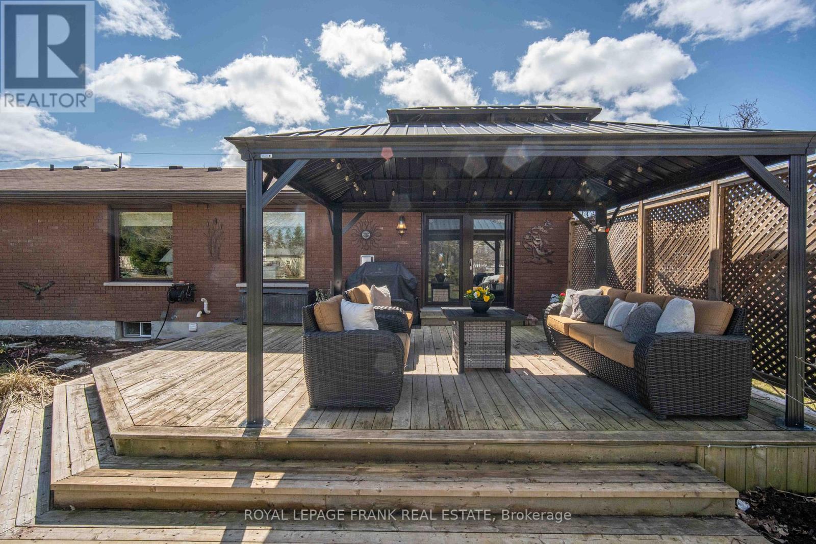Stunning, sprawling bungalow in the highly sought-after west end, offering nearly 3,800 sq ft of beautiful living space! Designed for both comfort and entertaining, the main level features 1,901 sq ft with rich hardwood flooring throughout and a bright, open-concept layout. The chef-inspired kitchen is a standout, complete with stainless steel appliances, two ovens, two pantries, and elegant granite countertops-perfect for hosting family and friends. Convenient main floor laundry with direct garage access adds to the home's functional appeal. Enjoy two spacious bedrooms plus a versatile den, ideal for a home office or guest suite. Walk out from the dining area to a large deck overlooking a large, professionally landscaped yard-your own outdoor retreat. The lower level offers an additional almost 1900 sq ft, providing incredible flexibility for a recreation space, in-law potential, or work-from-home setup. Thoughtfully updated with an LG Stove (2025), Furnace (2022), On-Demand Water Heater (2022), New Windows and Patio Doors (2021). This move-in-ready home checks all the boxes-an exceptional opportunity in a prime west end location! (id:61423)