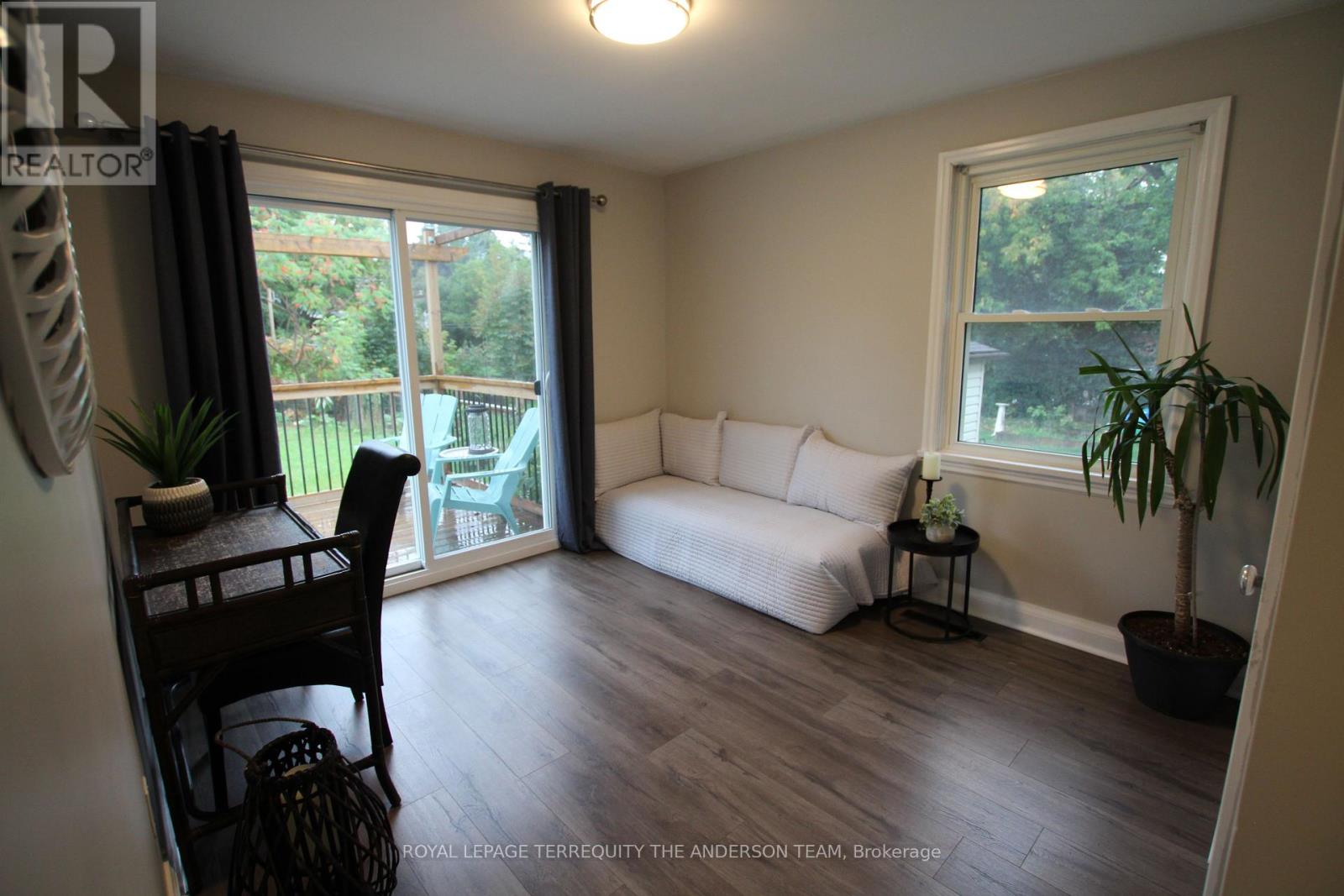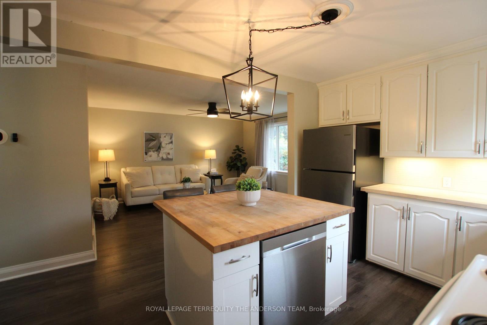 Don't miss this beautifully renovated bungalow in desirable North Peterborough, just minutes from Trent University. The covered front porch is perfect for morning coffee. Modern open-concept renovated kitchen with centre island, breakfast bar & built-in dishwasher. Large living/dining room open to kitchen perfect for entertaining. Main floor also features 3 spacious bedrooms and a beautiful new 4-piece bathroom. One of the bedrooms has a walk-out to deck. Separate entrance in-law suite offers a large 1-bedroom layout with above-grade windows & potential to add a second bedroom - perfect for extended family or income potential. Enjoy a huge fenced backyard with vegetable gardens & oversized detached garage. Double-wide driveway with parking for 8 vehicles is a rare find. Move-in ready with flexibility and space to grow. Love YOUR next house. (id:61423)
