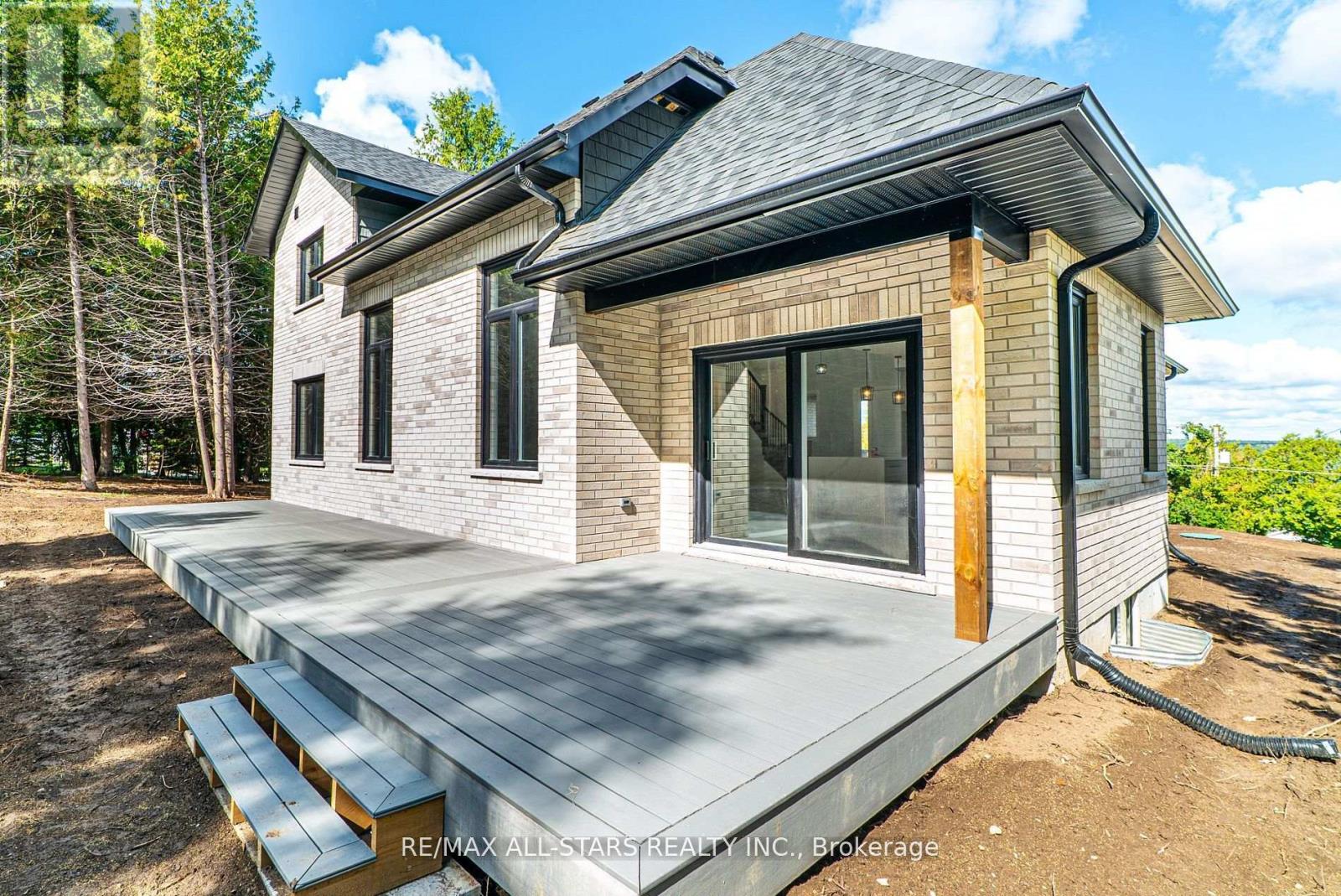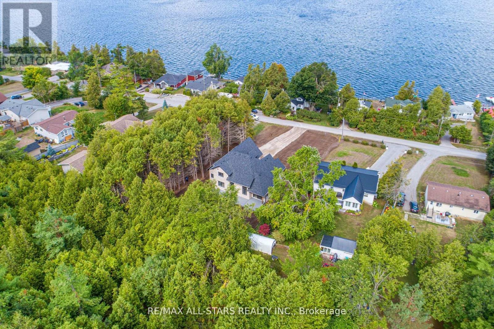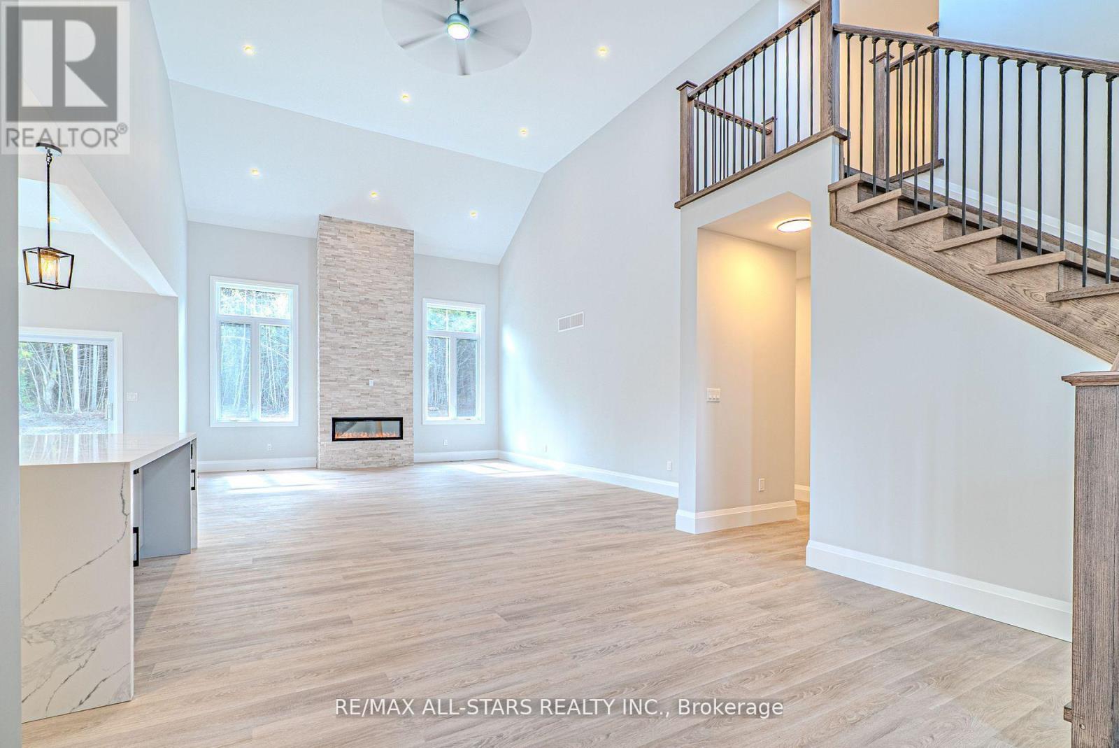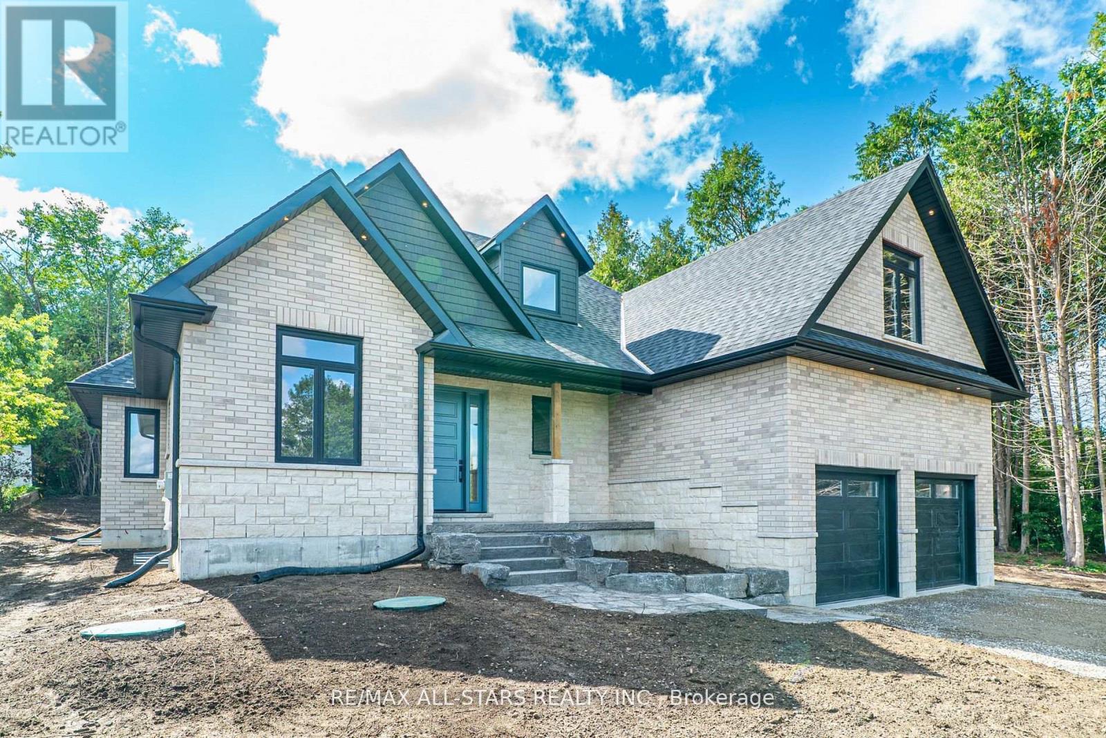 Premium brick/stone and modern designed approx 2665 sqft new home fully completed and ready for a quick closing. Private treed property with access and views over Sturgeon Lake. Located close proximity to Bobcaygeon and Lindsay. 3 bedrooms, m/f den, 2.5 baths, vaulted great room with 22ft ceiling & towering fireplace. Established custom builder with a very long list of standard enhanced features. Including Trenton ergonomic design cabinetry with extended uppers (decorative trim to ceiling), glass doors, valance lighting plus more. See complete feature sheet. Quartz tops in all baths, m/f laundry including new washer & dryer, kitchen with island waterfalls. Includes all new SS appliances. Bold interior baseboards and casing. Ensuite with heated floor, soaker tub, dbl vanity and large walk in tiled/frameless glassed shower. Walk in closets. Stylish interior oak stairs with black iron rod pickets. Full basement with rough in bath including pump. Large composite deck completed with black aluminum railings. Oversized insulated fully drywall finished garage. Includes HST & full Tarion Home Warranty. Property not assessed yet, taxes are land value only. (id:61423)