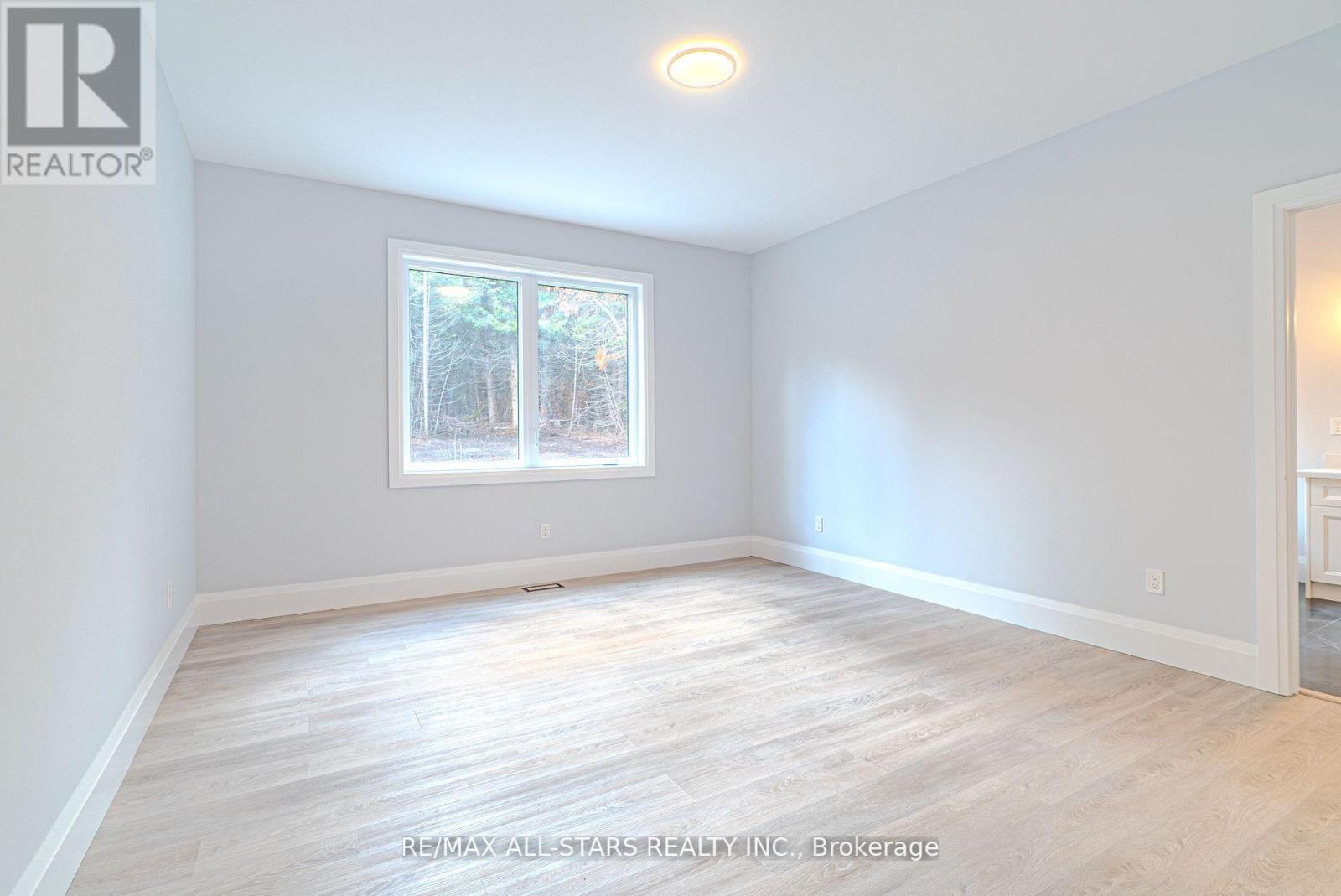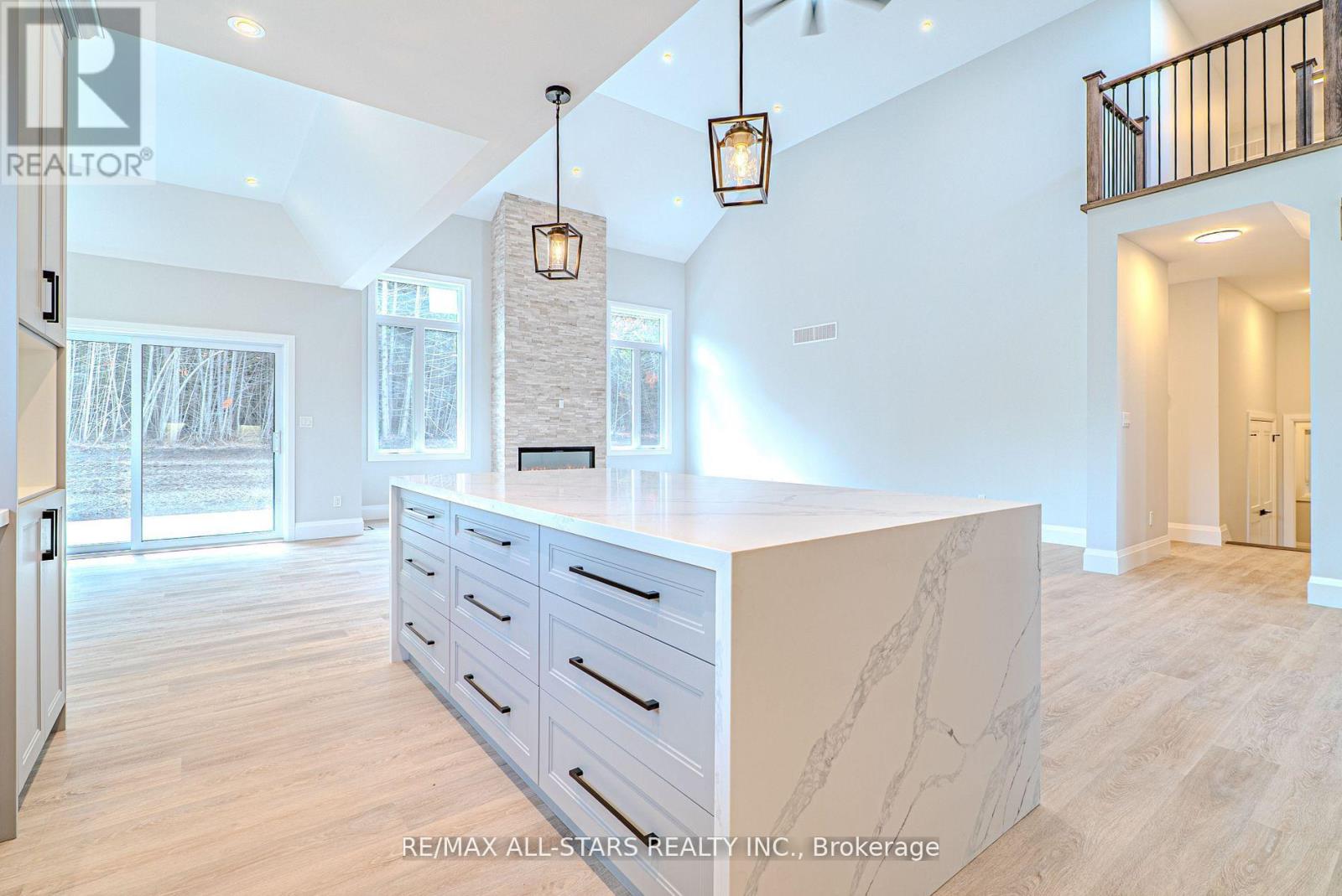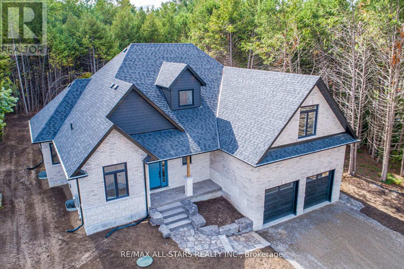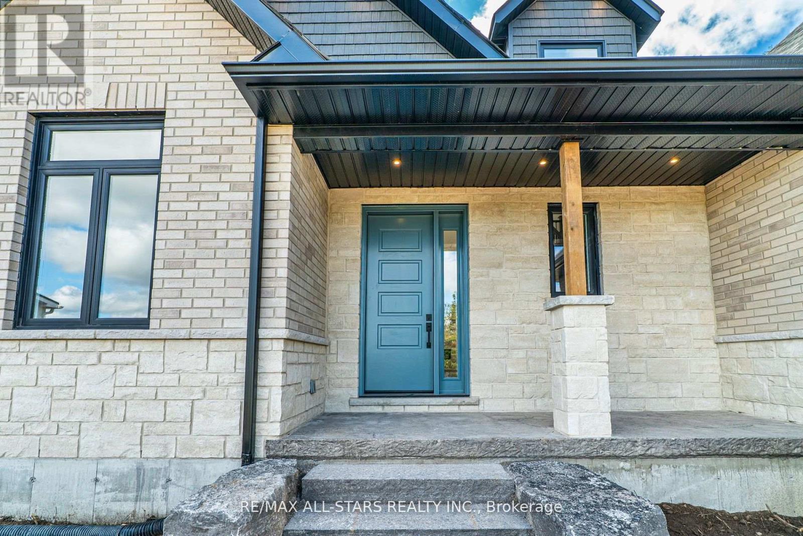 Premium brick/stone and modern designed approx 2665 sqft new home fully completed and ready for a quick closing. Private treed property with access and views over Sturgeon Lake. Located close proximity to Bobcaygeon and Lindsay. 3 bedrooms, m/f den, 2.5 baths, vaulted great room with 22ft ceiling & towering fireplace. Established custom builder with a very long list of standard enhanced features. Including Trenton ergonomic design cabinetry with extended uppers (decorative trim to ceiling), glass doors, valance lighting plus more. See complete feature sheet. Quartz tops in all baths, m/f laundry including new washer & dryer, kitchen with island waterfalls. Includes all new SS appliances. Bold interior baseboards and casing. Ensuite with heated floor, soaker tub, dbl vanity and large walk in tiled/frameless glassed shower. Walk in closets. Stylish interior oak stairs with black iron rod pickets. Full basement with rough in bath including pump. Large composite deck completed with black aluminum railings. Oversized insulated fully drywall finished garage. Includes HST & full Tarion Home Warranty. Property not assessed yet, taxes are land value only. (id:61423)
