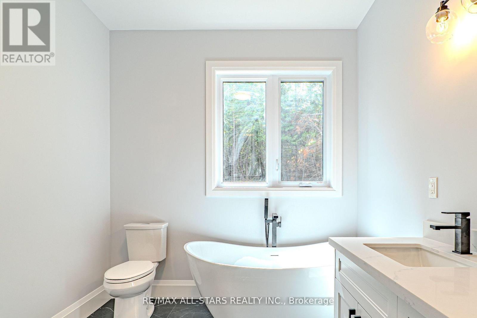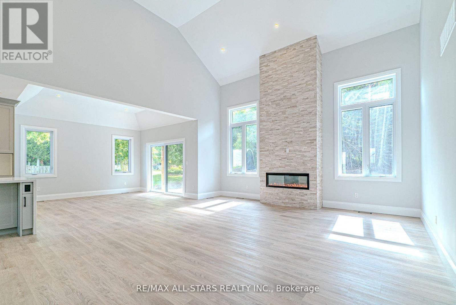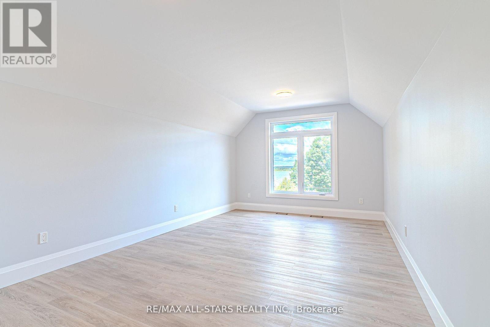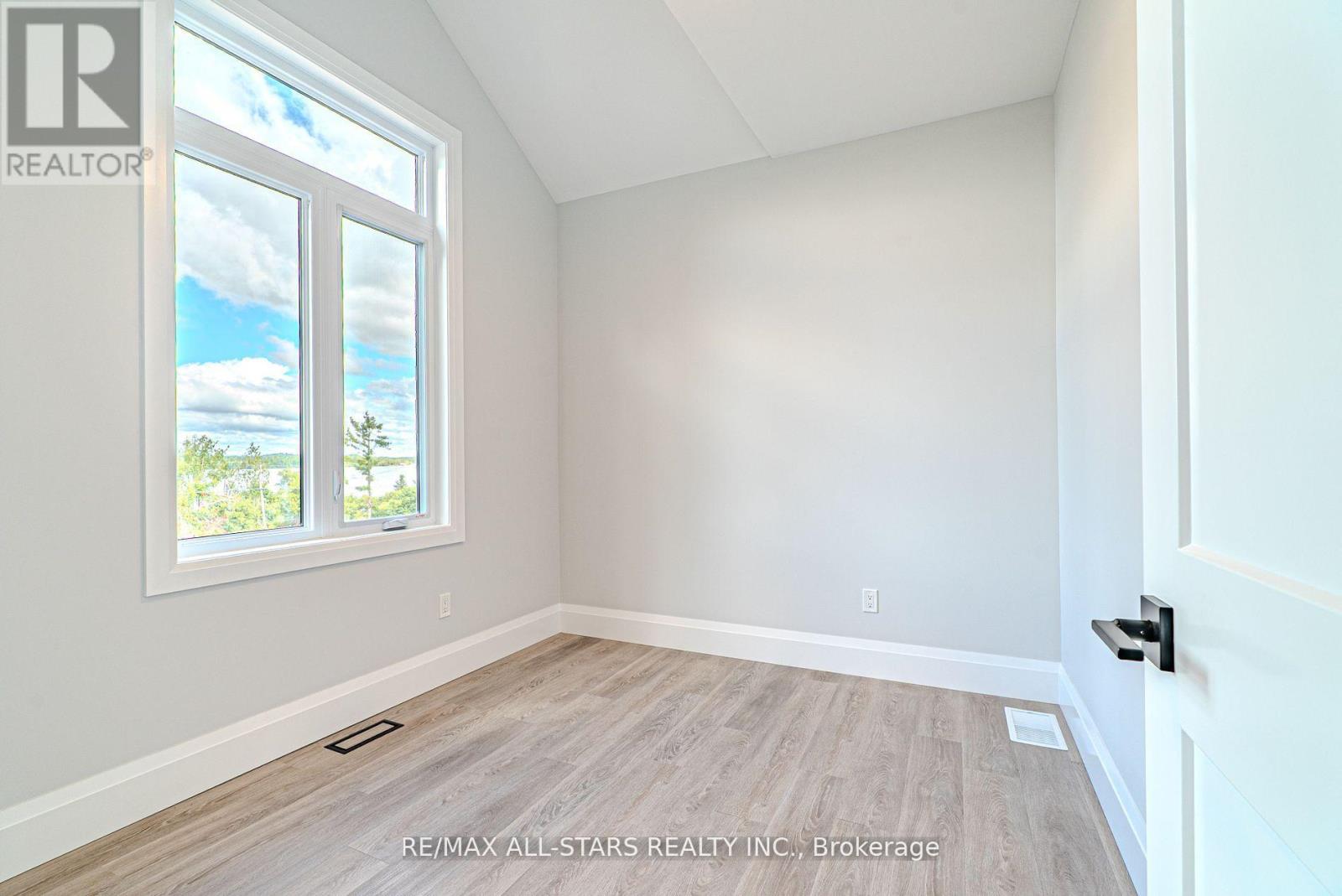Premium brick/stone and modern designed approx 2665 sqft new home fully completed and ready for a quick closing. Private treed property with access and views over Sturgeon Lake. Located close proximity to Bobcaygeon and Lindsay. 3 bedrooms, m/f den, 2.5 baths, vaulted great room with 22ft ceiling & towering fireplace. Established custom builder with a very long list of standard enhanced features. Including Trenton ergonomic design cabinetry with extended uppers (decorative trim to ceiling), glass doors, valance lighting plus more. See complete feature sheet. Quartz tops in all baths, m/f laundry including new washer & dryer, kitchen with island waterfalls. Includes all new SS appliances. Bold interior baseboards and casing. Ensuite with heated floor, soaker tub, dbl vanity and large walk in tiled/frameless glassed shower. Walk in closets. Stylish interior oak stairs with black iron rod pickets. Full basement with rough in bath including pump. Large composite deck completed with black aluminum railings. Oversized insulated fully drywall finished garage. Includes HST & full Tarion Home Warranty. Property not assessed yet, taxes are land value only. (id:61423)