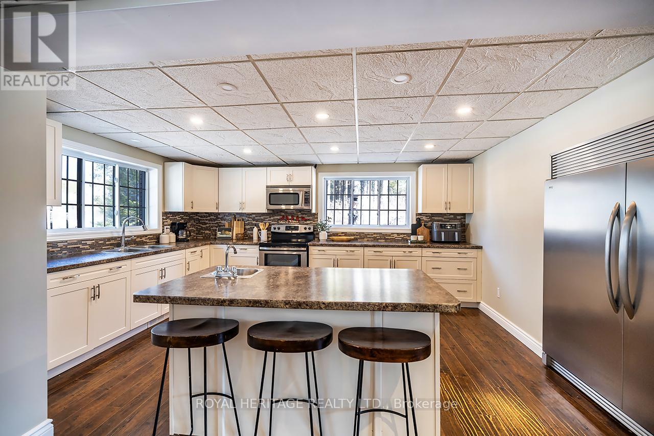 * Your Country Oasis Awaits * Welcome to 863 Carmel Line! A 6.75 acre property located just a short 5 minute drive to the Charming Village of Millbrook. Set peacefully amongst the pines this lovely side split home benefits from an open concept floorplan with tons of natural light throughout. Huge eat-in kitchen with center island & built in SS appliances. The expansive living room features a wet bar and two walkouts to your south facing deck. A finished W/O Basement offers above grade windows and additional space for office or entertainment. Three nicely sized bedrooms with a 4pc & 2pc Baths on the Upper level. Convenient main floor laundry. The Dreamy Custom built 40ft x 40ft Shop features a Timber frame mezzanine, 100 amp service, spray foam insulation, in floor tubing for heat, 8" concrete floor and 16ft walls. The fully fenced backyard is ideal for summer gatherings and a safe space for kids & pets to play. Approx. 4 acres of flat and workable farm land grants the perfect opportunity for the Horse enthusiast or Hobby farmer to set up shop. Quick access to the 10,000+ acre Ganaraksa forest by Horseback, ATV or Snowmobile. This property is an outdoor enthusiasts dream! (id:61423)