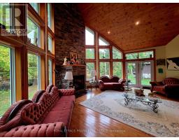 EELS CREEK: Beautifully appointed home sitting on over a half acre point lot with the amazing sound of the terrific rapids on one side and great swimming/canoeing on the SE side of the point lot. This custom 1800+ Sq. Ft. home offers 3 bedrooms, a main floor family room and den, 2.5 bathrooms and upgraded finishes throughout. Including hardwood floors, cathedral ceilings, floor to ceiling windows and fireplace, granite kitchen counters, central vacuum, central air, main floor laundry and 1860 square foot poured concrete basement with 8 ft ceilings waiting to be finished. Detached 1.5 car garage with cement floor and hydro, plus a huge paved driveway allowing for lots of parking. Long Lake public access in the Kawartha Highlands Provincial Park is just minutes away. This property is approximately a 2 hour drive from the GTA and a short drive to the village of Apsley for shopping, our medical centre, public school, library and our impressive community centre with a state of the art workout facility and NHL size rink. Minutes from Jack, Anstruther & Chandos Lakes as well. You will love calling cottage country your home, come see (id:61423)