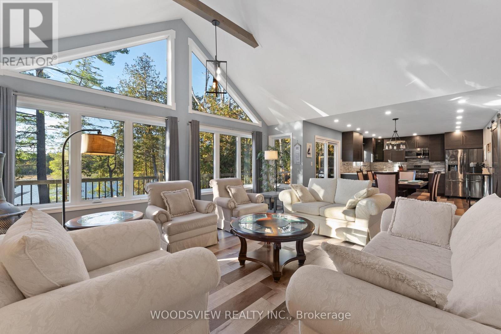 Welcome to Lakeside Luxury Living. Experience the beauty of all four seasons at this custom built 2018 lakefront masterpiece, offering over 3,000 sqft of exquisitely finished living space. Thoughtfully designed with an open-concept layout, the home is enriched by soaring cathedral ceilings that flood the interior with natural light and frame breathtaking views of the tranquil, crystal clear lake. Offered fully furnished, this exceptional residence features five spacious bedrooms and four beautifully appointed bathrooms, including a luxurious primary suite complete with a private four-piece ensuite. The main level offers the convenience of a dedicated laundry room and seamless flow to a stunning walkout deck, perfectly positioned to capture golden sunsets and peaceful waterside moments. The fully finished walkout lower level feels like a retreat of its own, showcasing a second full kitchen, ideal for extended family, hosting guests, or effortless entertaining. Step outside to your private dock, where calm waters and endless lake views create a picture-perfect backdrop for morning coffees or evening gatherings. Set on a quiet, picturesque year-round municipal road with exceptional privacy from neighbouring properties, this home offers the perfect blend of seclusion and convenience. Ideally located just 15-20 minutes from Fenelon Falls and Bobcaygeon, you'll enjoy easy access to charming shops, restaurants, and all essential amenities while still feeling worlds away in your own private lakeside sanctuary. Whether you're hosting loved ones or simply unwinding by the water, this captivating four-season retreat invites you to live beautifully, every season of the year. (id:61423)