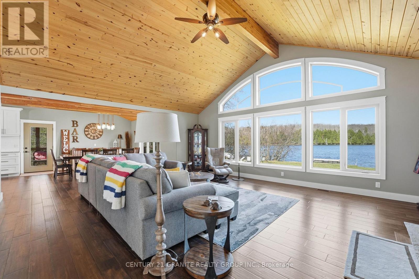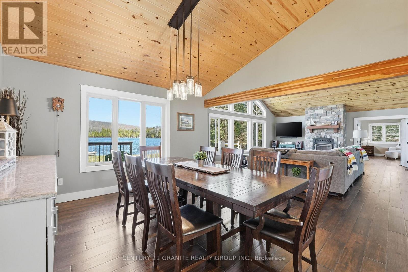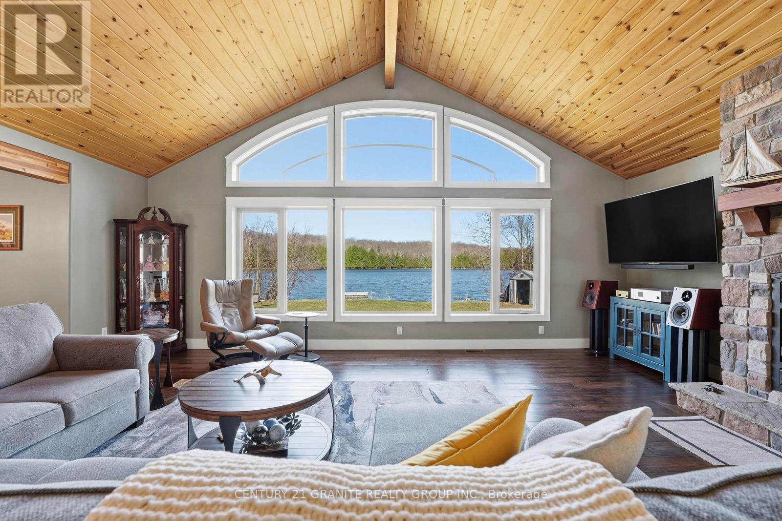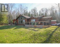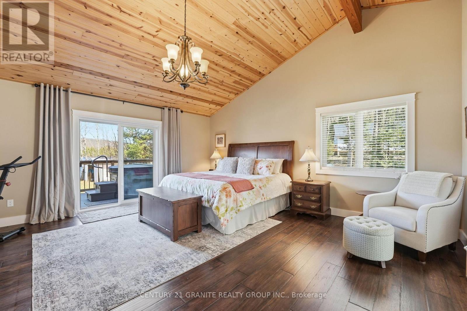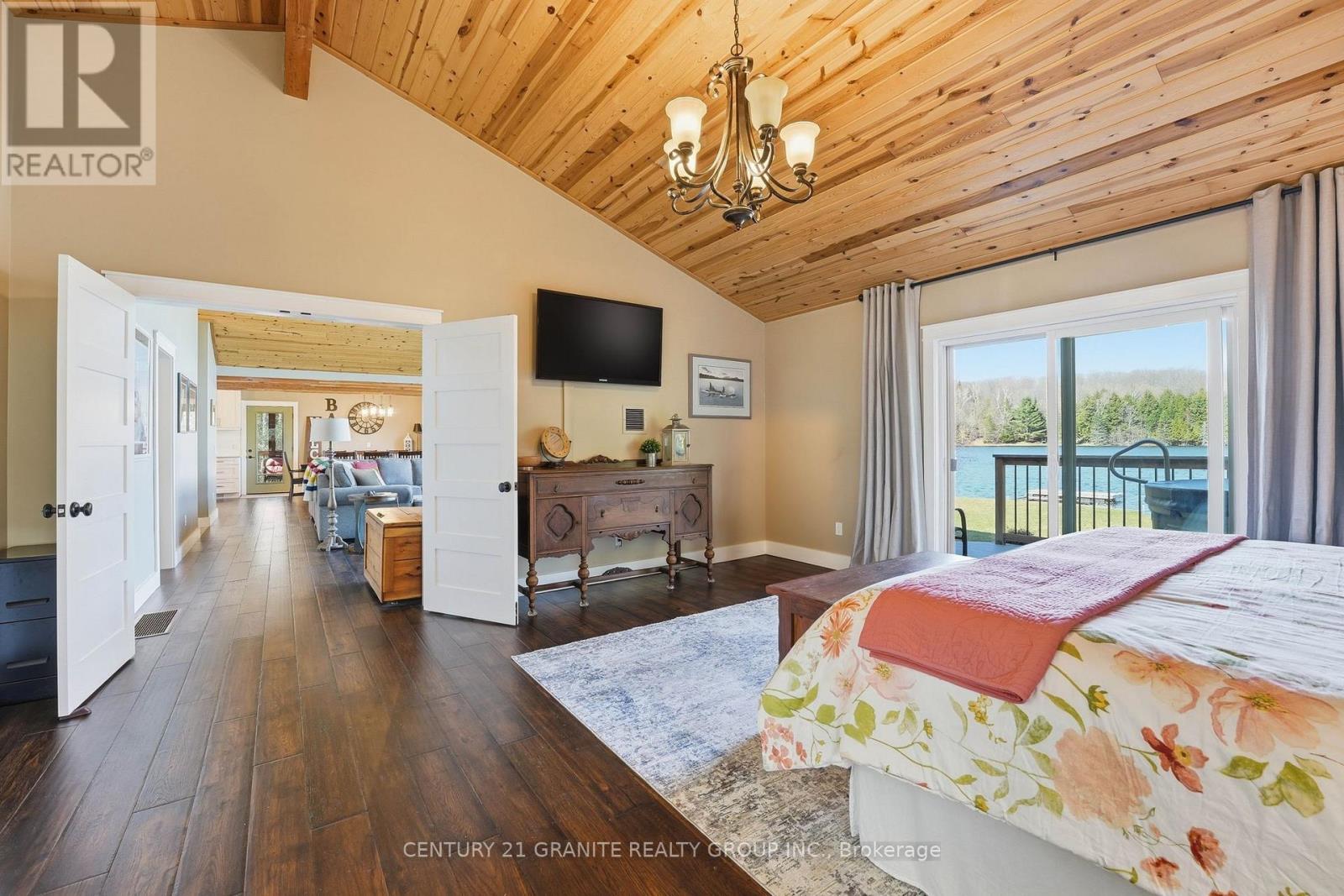 Welcome to your private lakeside waterfront retreat on beautiful Vader Lake-this custom-built Linwood home offers the perfect lend of architectural charm, comfort, and cottage country living. Step inside and be captivated by the soaring cathedral ceilings and open-concept design, creating a bright and airy space filled with natural light from the abundance of windows throughout. The spacious living room is anchored by a stunning stone fireplace, making it the perfect place to gather and unwind. The thoughtfully designed main floor features a large primary bedroom complete with a walk-in closet and a 4-piece ensuite with patio doors leading directly to the deck and hot tub-your own private escape. And additional bedroom and 3-piece bathroom on the main level offer convenience for family and guests. The kitchen is both stylish and functional, showcasing granite countertops, professional grade appliances, quality finishes, and seamless flow into the dining and living areas. Engineered hardwood flooring and main floor laundry add to the home's everyday comfort. Bonus: a backup generator is already in place, giving you reliable power and peace of mind year-round - a must-have for country living. Enjoy the outdoors from the screened-in Muskoka-style porch, ideal for relaxing bug-free summer evenings, or step outside and take in the peaceful surroundings. Enjoy the maintenance free composite decks & L-shaped decks & swim raft. Adding even more value is the charming bunkie with hydro, perfect for guests, extra sleeping space or a cozy retreat. (id:61423)