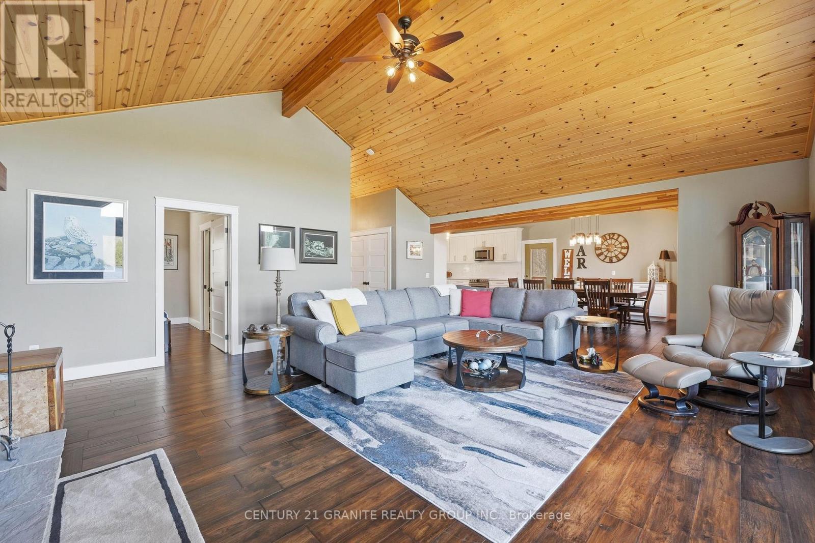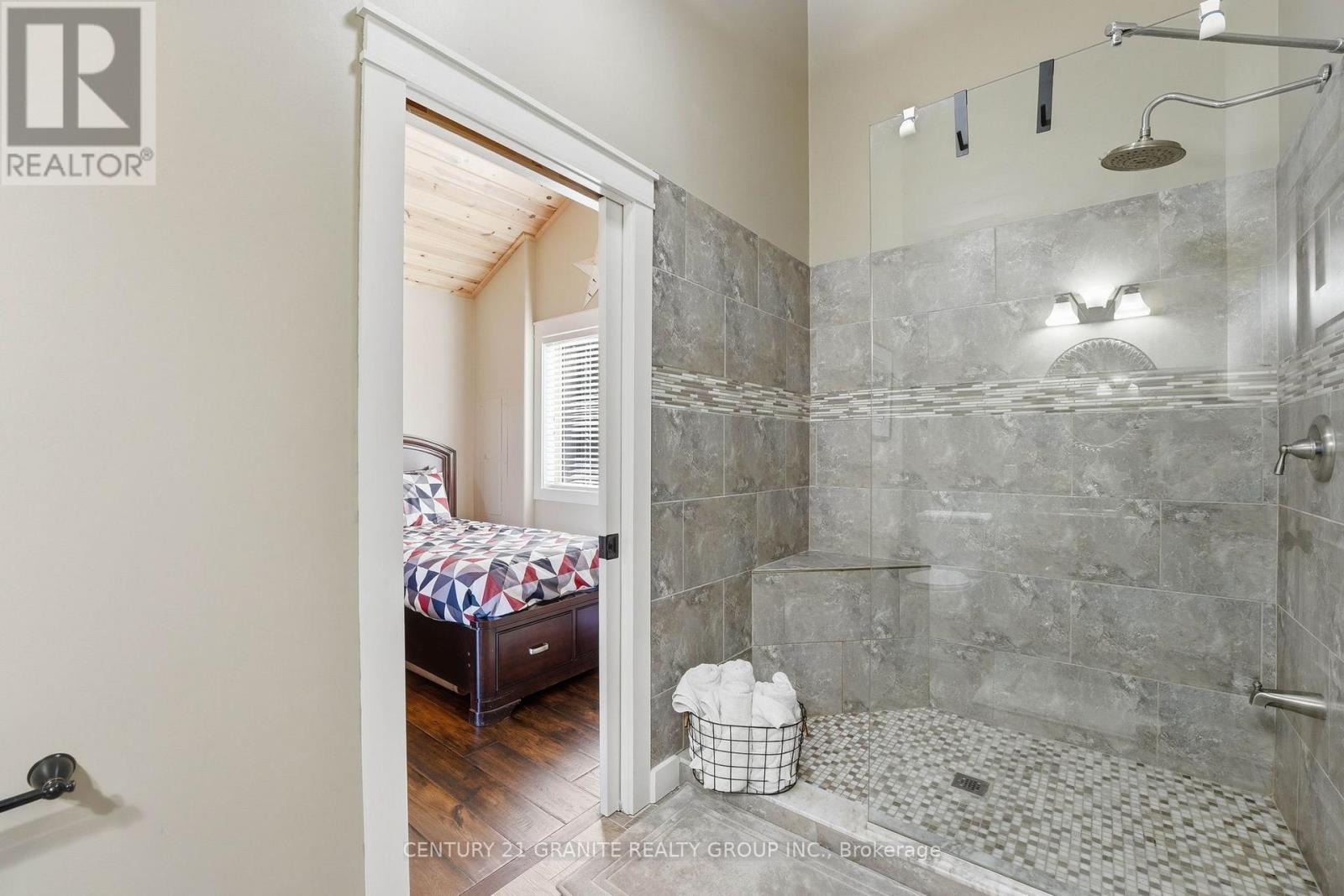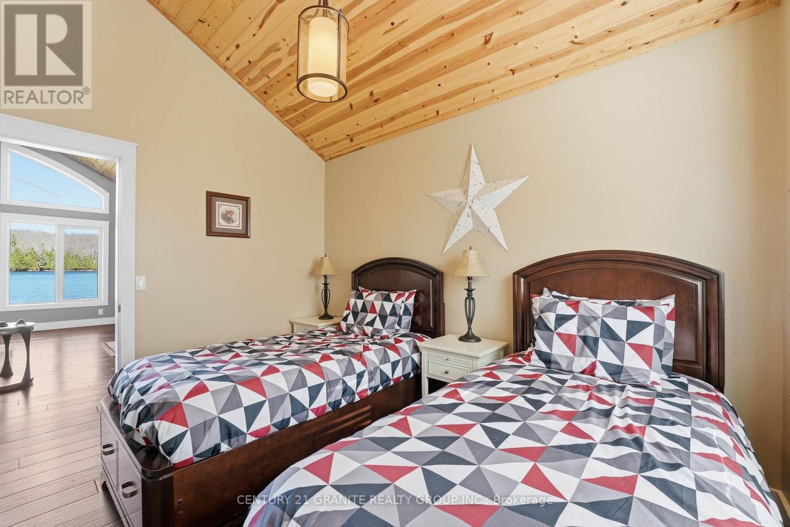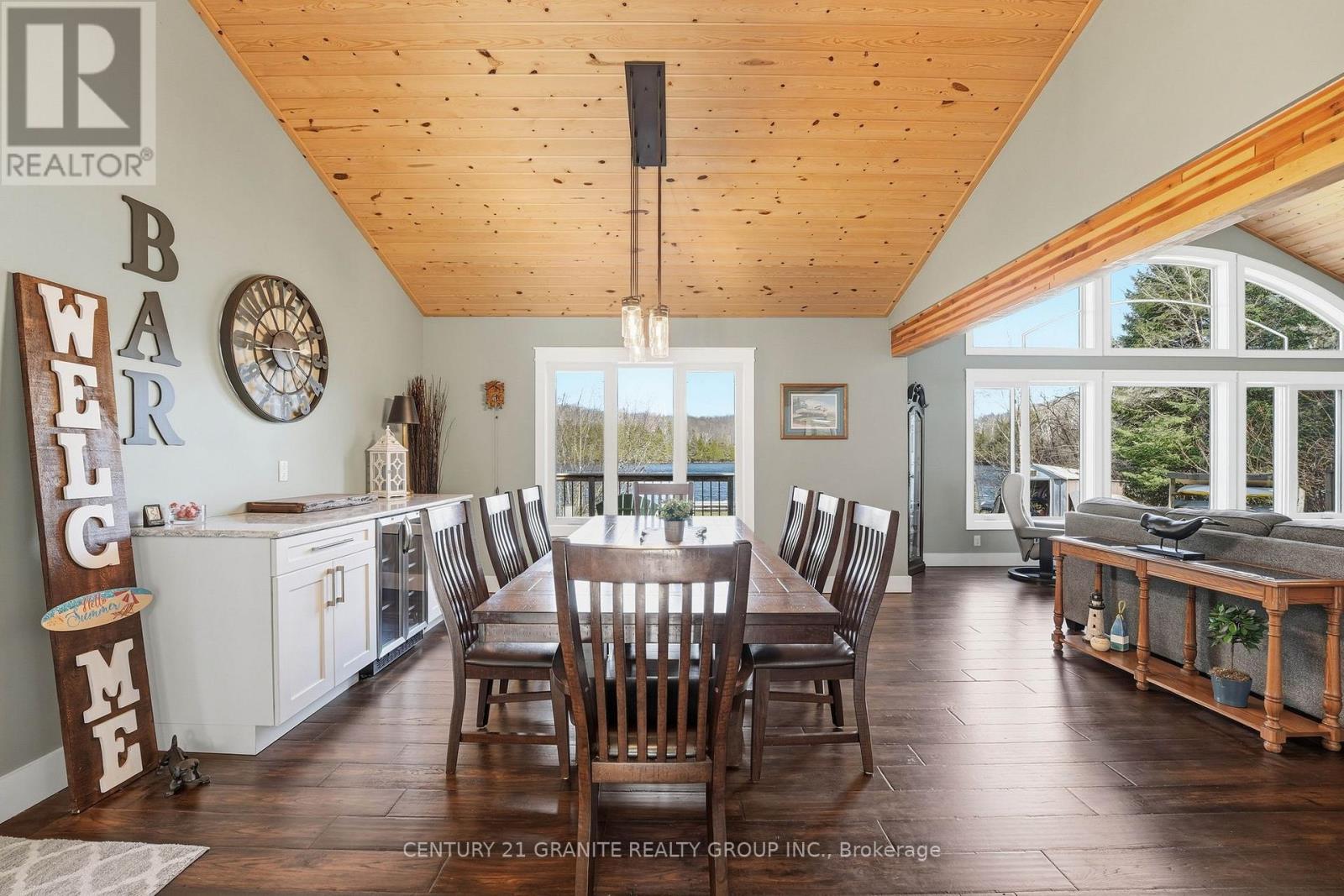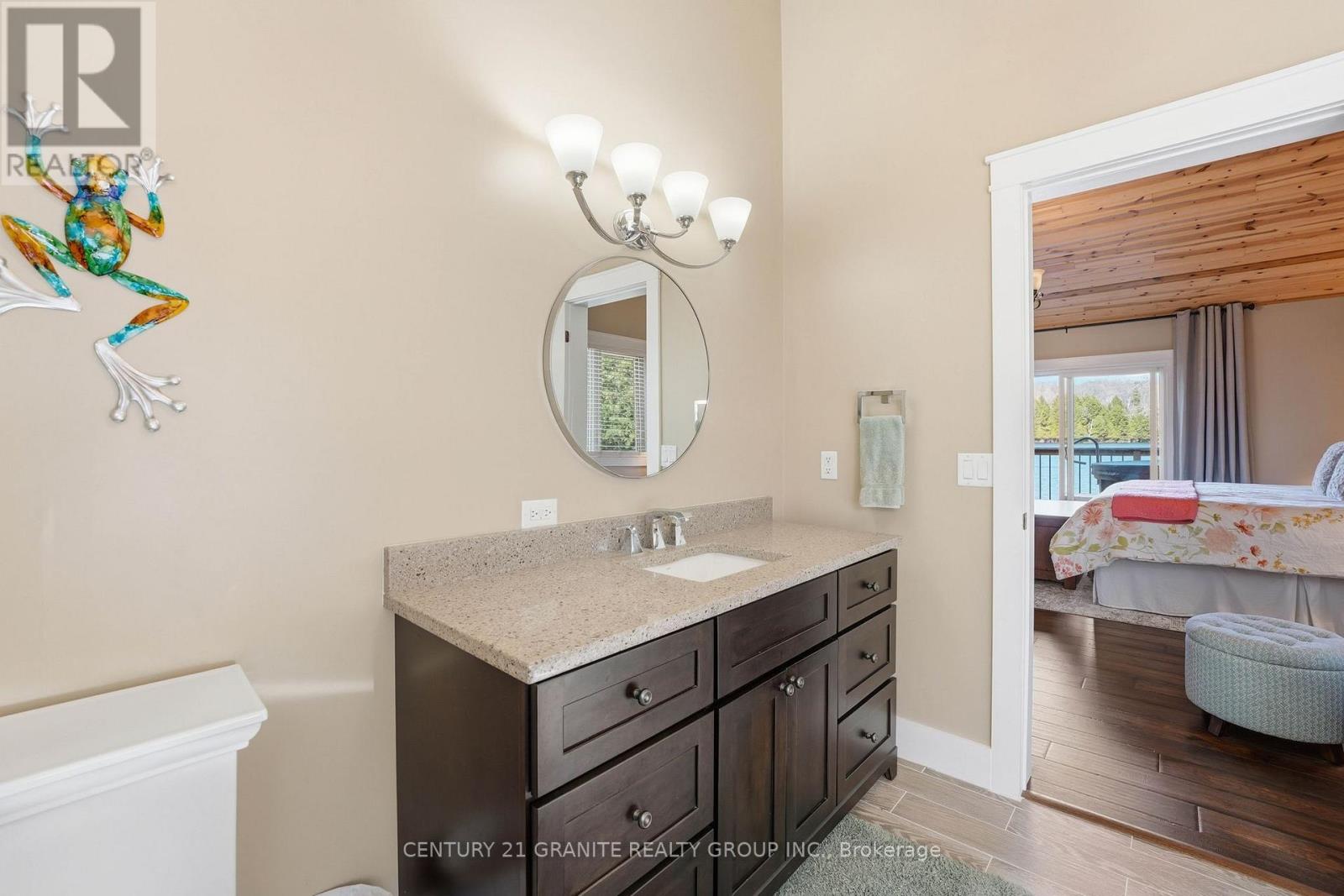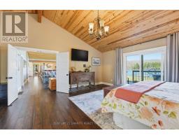 Welcome to your private lakeside waterfront retreat on beautiful Vader Lake-this custom-built Linwood home offers the perfect lend of architectural charm, comfort, and cottage country living. Step inside and be captivated by the soaring cathedral ceilings and open-concept design, creating a bright and airy space filled with natural light from the abundance of windows throughout. The spacious living room is anchored by a stunning stone fireplace, making it the perfect place to gather and unwind. The thoughtfully designed main floor features a large primary bedroom complete with a walk-in closet and a 4-piece ensuite with patio doors leading directly to the deck and hot tub-your own private escape. And additional bedroom and 3-piece bathroom on the main level offer convenience for family and guests. The kitchen is both stylish and functional, showcasing granite countertops, professional grade appliances, quality finishes, and seamless flow into the dining and living areas. Engineered hardwood flooring and main floor laundry add to the home's everyday comfort. Bonus: a backup generator is already in place, giving you reliable power and peace of mind year-round - a must-have for country living. Enjoy the outdoors from the screened-in Muskoka-style porch, ideal for relaxing bug-free summer evenings, or step outside and take in the peaceful surroundings. Enjoy the maintenance free composite decks & L-shaped decks & swim raft. Adding even more value is the charming bunkie with hydro, perfect for guests, extra sleeping space or a cozy retreat. (id:61423)