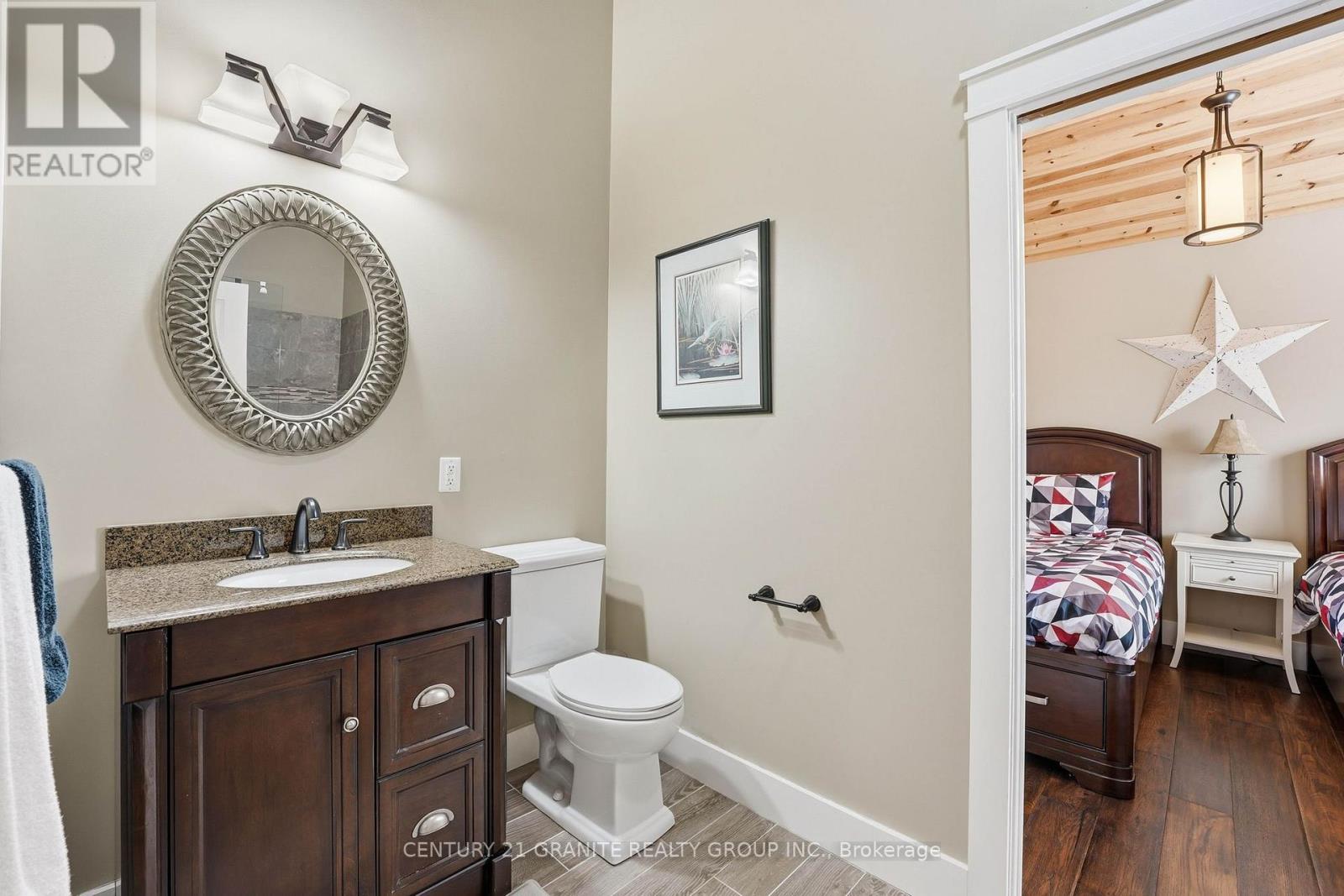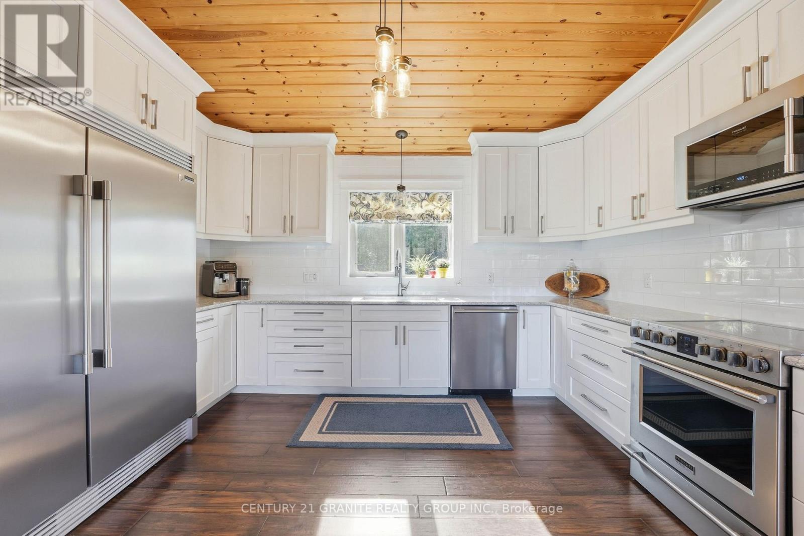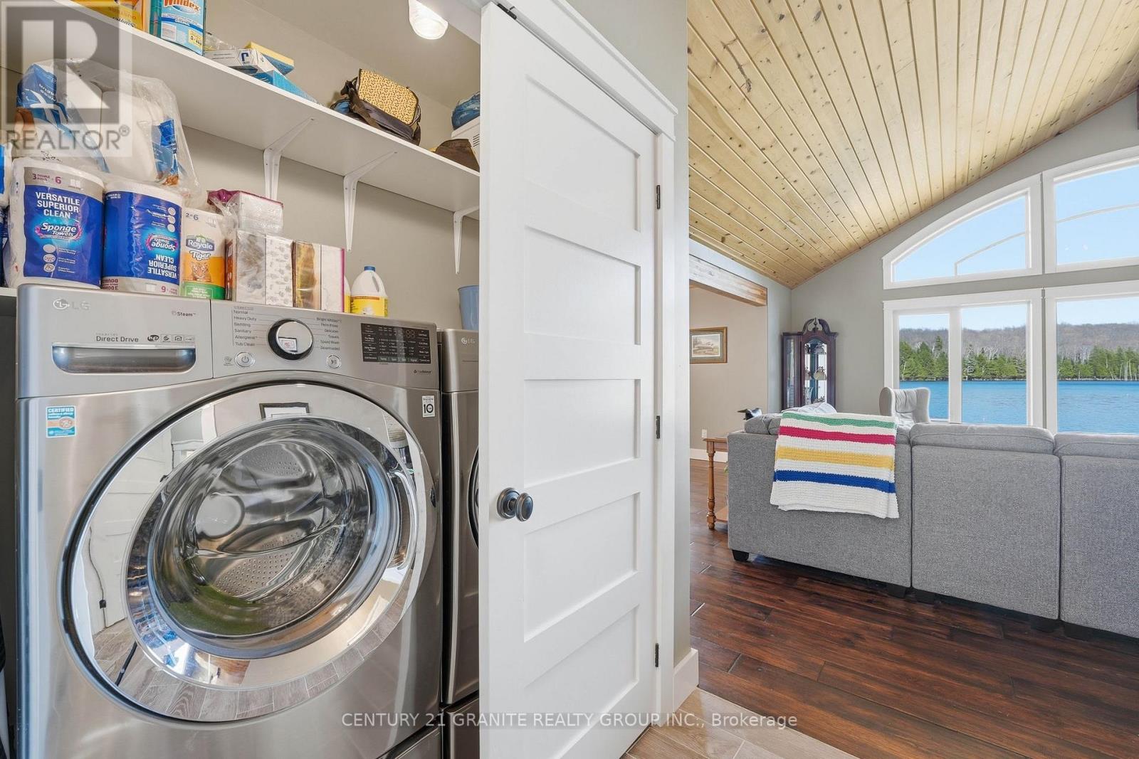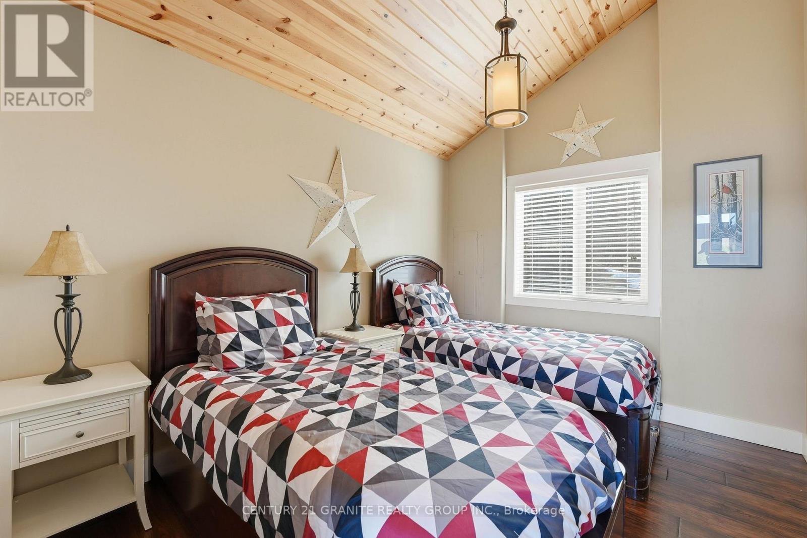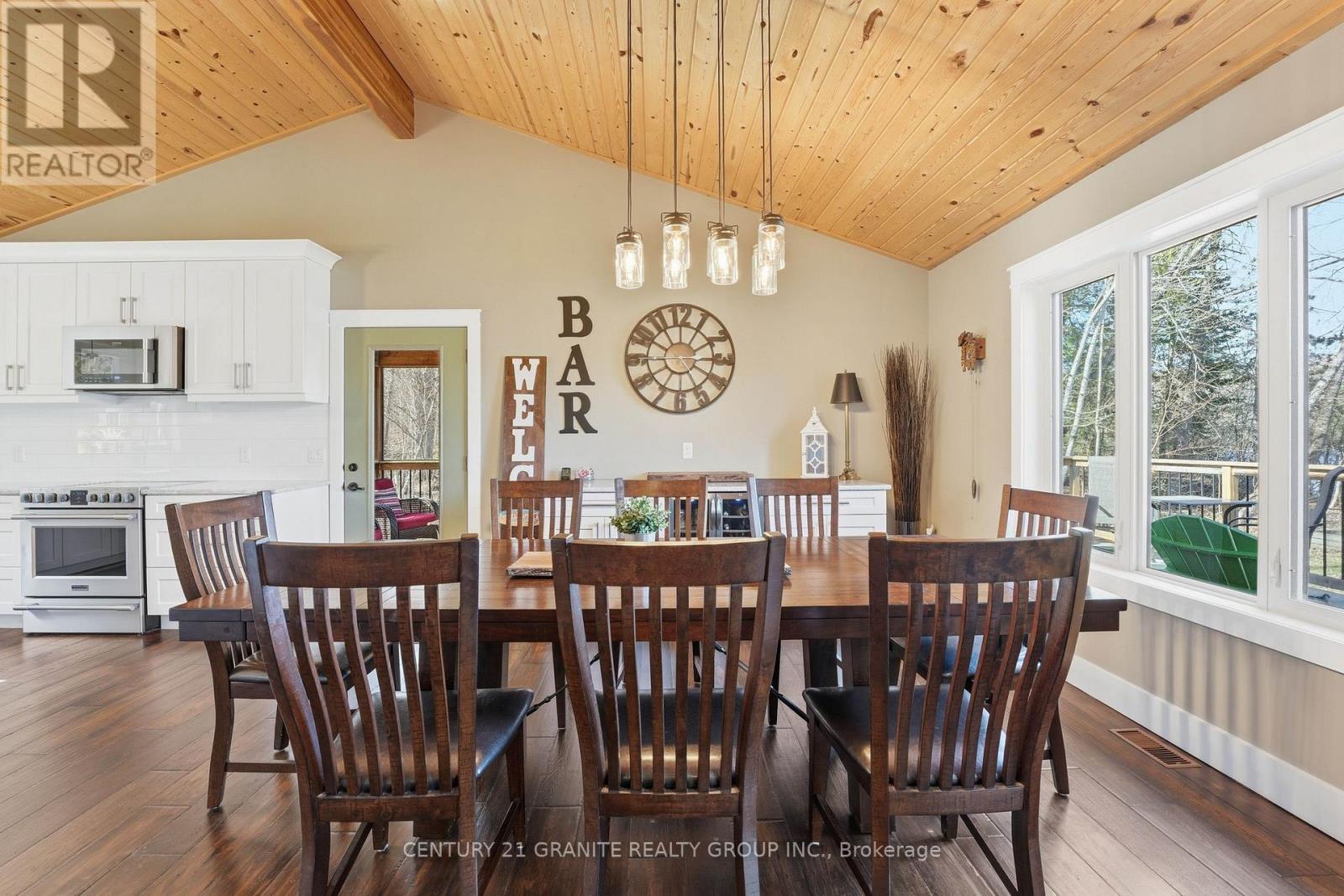 Welcome to your private lakeside waterfront retreat on beautiful Vader Lake-this custom-built Linwood home offers the perfect lend of architectural charm, comfort, and cottage country living. Step inside and be captivated by the soaring cathedral ceilings and open-concept design, creating a bright and airy space filled with natural light from the abundance of windows throughout. The spacious living room is anchored by a stunning stone fireplace, making it the perfect place to gather and unwind. The thoughtfully designed main floor features a large primary bedroom complete with a walk-in closet and a 4-piece ensuite with patio doors leading directly to the deck and hot tub-your own private escape. And additional bedroom and 3-piece bathroom on the main level offer convenience for family and guests. The kitchen is both stylish and functional, showcasing granite countertops, professional grade appliances, quality finishes, and seamless flow into the dining and living areas. Engineered hardwood flooring and main floor laundry add to the home's everyday comfort. Bonus: a backup generator is already in place, giving you reliable power and peace of mind year-round - a must-have for country living. Enjoy the outdoors from the screened-in Muskoka-style porch, ideal for relaxing bug-free summer evenings, or step outside and take in the peaceful surroundings. Enjoy the maintenance free composite decks & L-shaped decks & swim raft. Adding even more value is the charming bunkie with hydro, perfect for guests, extra sleeping space or a cozy retreat. (id:61423)