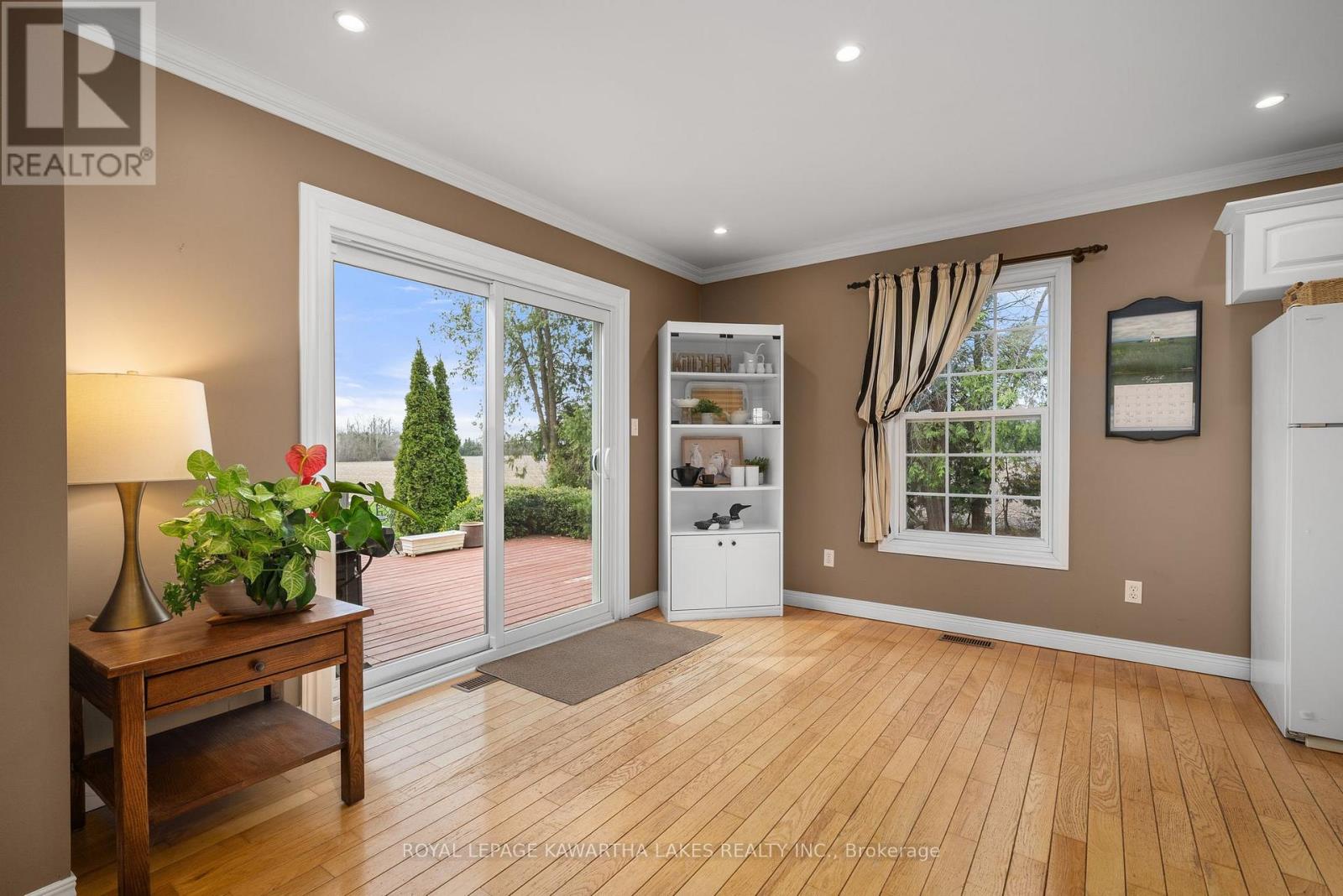 This Two-storey brick farmhouse is the country retreat you have been searching for, for your family. Located on a hard top road close to the quaint village of Woodville between Lindsay & Beaverton this 93-acre Reproduction farm house (2001) features a stunning 30 X 20 Great Room, 4 spacious bedrooms, 2 full baths, and a main floor office. Other features of the home include a Wrap Around Porch, Open Concept Kitchen/ Dining Room , Two Walk outs to a Private deck, and main floor laundry. Partially finished basement with a walk-up to a Private Park Like setting with perennial gardens and open farm fields . The property also includes a 29' x 70' commercial shop with a 24' x 40' portable addition, heated by both a pellet stove and a new propane furnace (2025). This high-visibility location is ideal for a family business, with the current successful operation having thrived here for many years. 50 Acres of fertile, high producing Otonabee Loam and approximately 38 acres of mixed bush. Solar panels provide Passive Income of approx $11,000 annually for the remainder of the contract. Just over an hours drive from the G.T.A. for an easy commute! (id:61423)