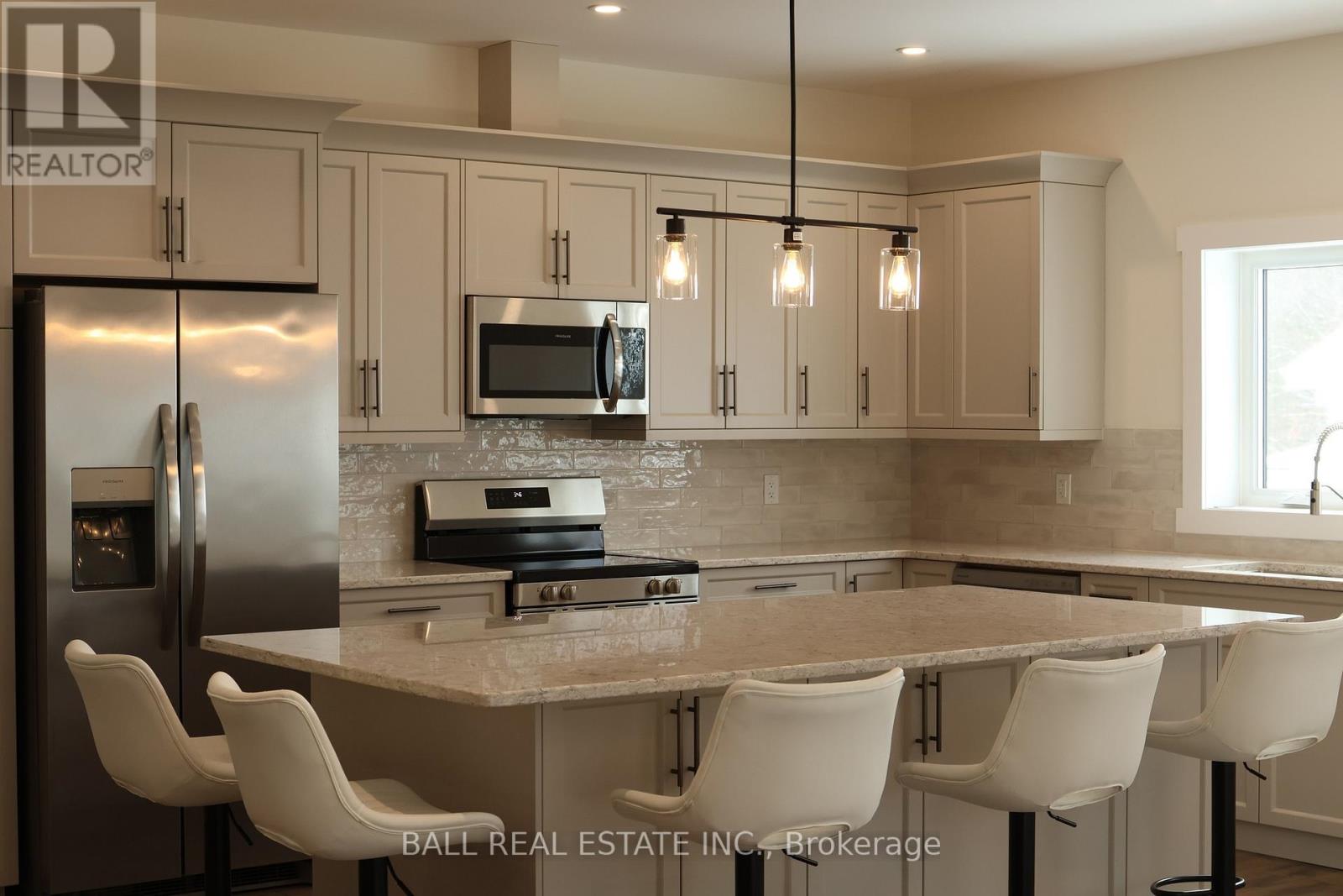 Check out this beauty! 9 Williams Drive in Bancroft - a beautifully crafted home built in 2024 with exceptional attention to detail including high ceilings, the perfect floor plan and high end fixtures. Nestled in a quiet subdivision on a peaceful cul-de-sac. The main floor welcomes you with a spacious foyer featuring double closets, providing ample storage right at the entrance. The heart of the home is the bright, open-concept living space with a walkout to the back deck - perfect for entertaining or relaxing. The custom kitchen is a standout, showcasing quartz countertops, stainless steel appliances, and a large island with additional seating. Convenient main floor laundry includes built-in cabinetry and a laundry sink. The primary bedroom is a true retreat, offering generous space and a luxurious four-piece ensuite complete with a soaker tub and a separate shower. A second bedroom and two piece bath completes the main level. Downstairs, the fully finished lower level features a massive rec room, two additional large bedrooms, a full four-piece bathroom with double vanity, utility area, and plenty of storage throughout! Heated with a propane furnace and equipped with central air, this home ensures year-round comfort. Attached garage, high-speed internet, full cell service, municipal garbage and recycling, and walking distance to all Bancroft amenities, this is a fantastic opportunity to enjoy modern living in a family-friendly neighborhood. (id:61423)