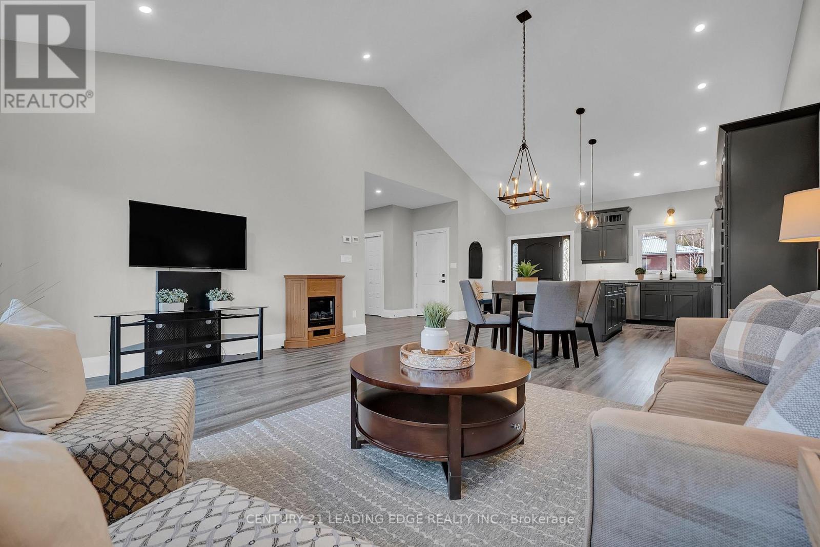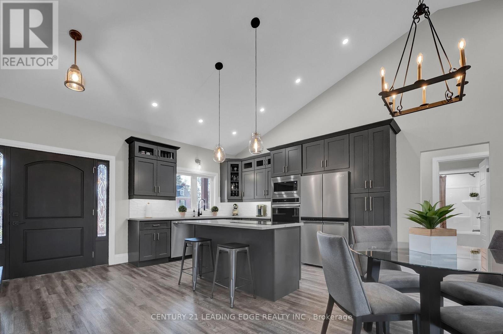 Welcome to 90 Second St, Campbellford, this custom built, 4 year old, 3+2 bedroom bungalow (1,500sqft) is situated on a desirable, 82' by 132' in-town lot! Offering approximately 2,900sqft of finished living space, this home will not disappoint! Front exterior includes a concrete walkway leading to a cozy covered front porch with wood accents and a 42" fiberglass front entry door. Entertain in style in this open concept layout which features a stunning 14' vaulted ceiling. An ultra modern kitchen with island, quartz counters, upgraded cabinets (wood drawers), modern light fixtures, plenty of storage & upscale appliances (s/s fridge, built-in oven, built-in microwave, induction cooktop & dishwasher). Spacious combined dining & living areas with pot lights and walk-out to composite deck & stone patio. A private primary bedroom with 9' ceiling, walk-in closet and a 4pc ensuite (large walk-in shower & double sinks). Good sized bedrooms 2 & 3 with double closets, large window and a 4pc bath (with linen closet) in-between. A designated main floor laundry room with plenty of cabinets and window. A fully finished basement with a huge recreation room (dual zones), two additional bedrooms (above grade windows) and 4pc bathroom. This quality built home offers modern construction features such as R30 ICF foundation, an oversized two car insulated garage & a 200amp electrical panel to name a few. Bonus 4 car driveway. Close walk to shopping, schools & waterfront trail! Tarion Warranty! (id:61423)