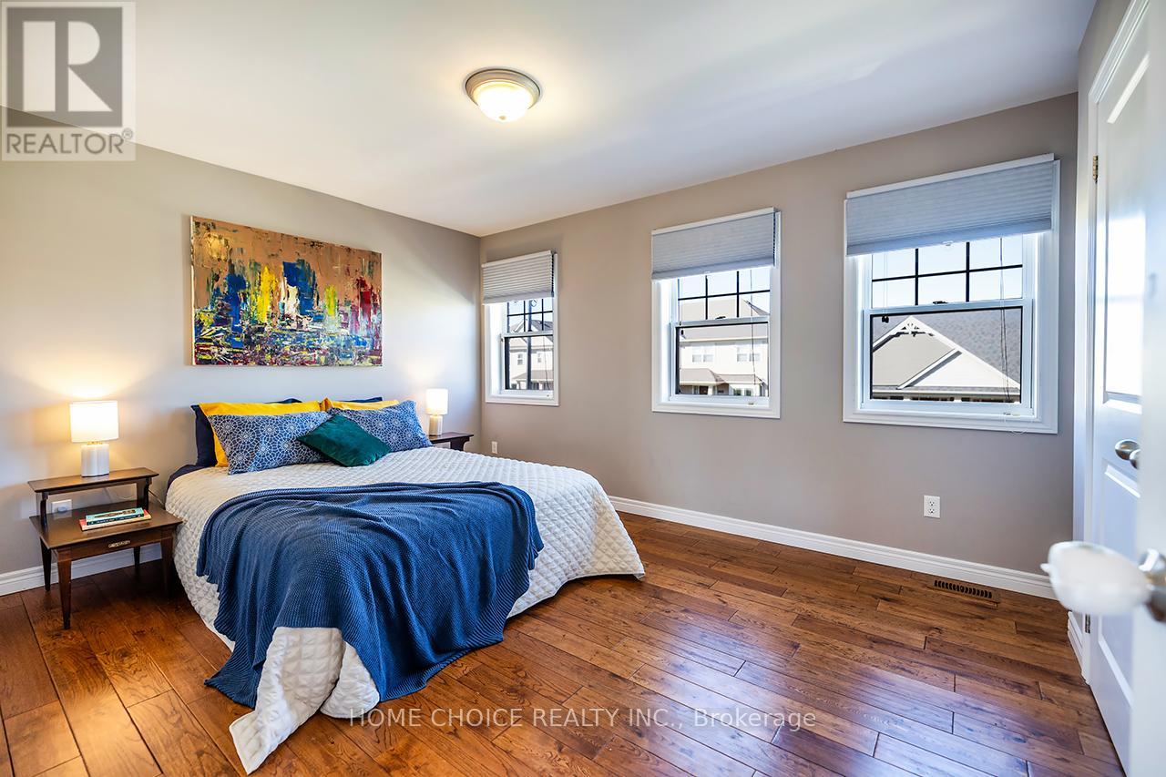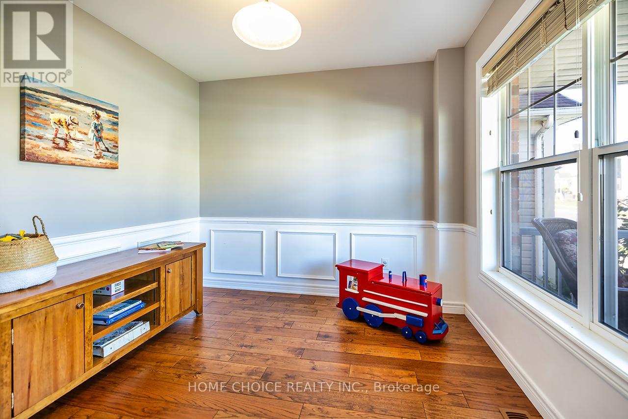 Welcome to the perfect blend of comfort, style, and community! Built in 2013, this stunning all-brick two-story home is ideal for families and anyone seeking everyday convenience in a vibrant neighborhood. Offering 3 bedrooms and 2.5 bathrooms, the home features a bright, open-concept kitchen, living, and dining space designed for both entertaining and daily living. Large windows flood the home with natural light, while upgraded wainscoting adds a touch of timeless elegance throughout. Upstairs, hardwood floors lead to a spacious primary bedroom easily accommodating a king-sized bed, along with a beautifully appointed four-piece bathroom. The fully finished basement is warm and inviting, complete with LED pot lights, a striking stone electric fireplace, and a sleek three-piece bathroom with a walk-in tiled shower-perfect for guests or relaxing movie nights. Step outside to enjoy your private, secluded backyard, and take advantage of the detached garage for added convenience. With two parks just a one-minute walk away and an abundance of nearby amenities, this home truly has it all. Don't miss your chance to own this exceptional property-book your private showing today! (id:61423)