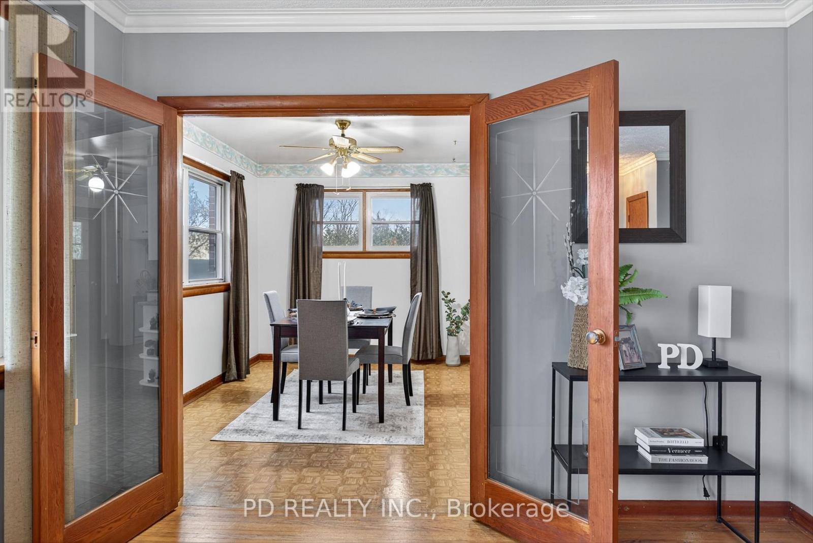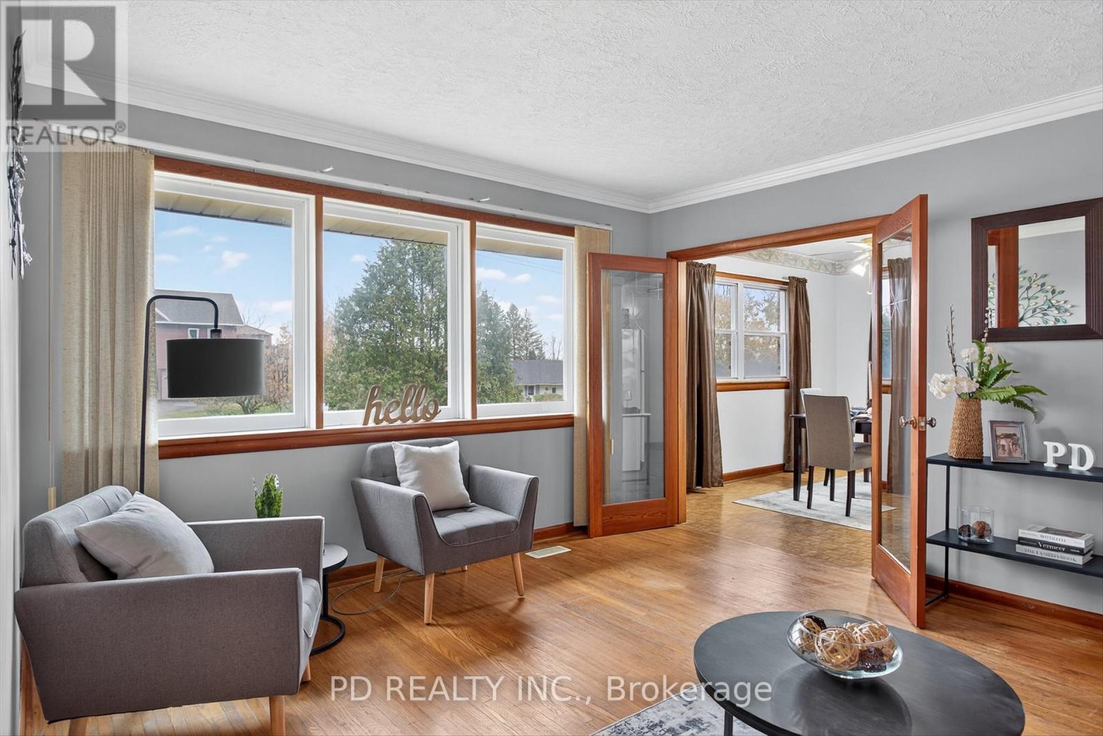 Charming 3 bedroom, 1 bath brick bungalow on a 1/2 acre corner lot in Mount Pleasant. This well located home is perfect for first time buyers or those looking to downsize. Enjoy a bright living room with hardwood floors, a separate dining room with gorgeous double doors, and a functional kitchen. The property features a full unspoiled basement, detached garage, newer propane furnace, covered front porch, and a spacious covered side porch which is ideal for relaxing or entertaining. Septic pump out November 2025. (id:61423)