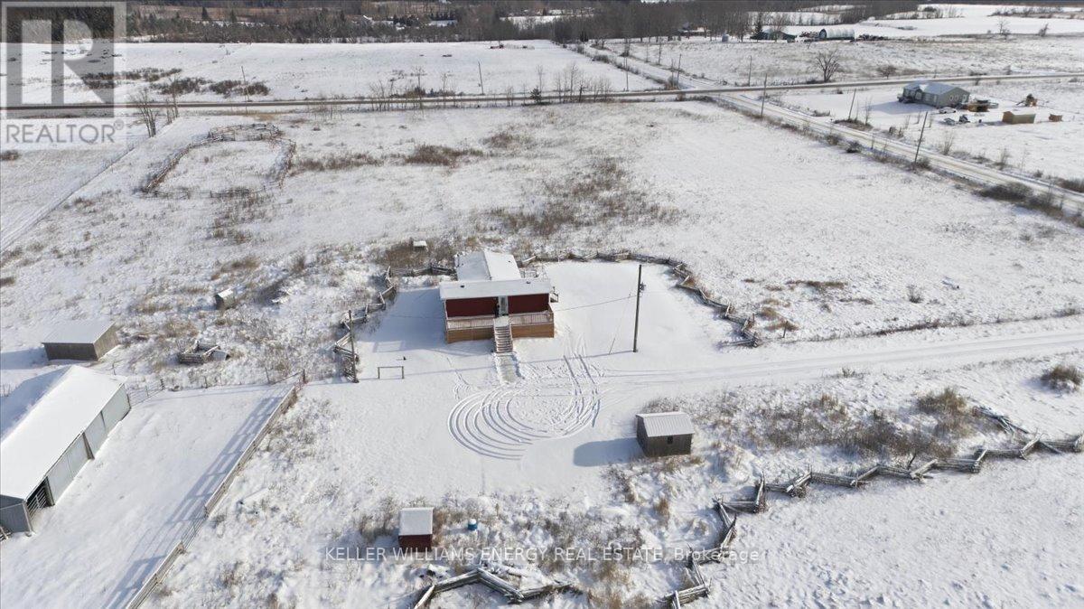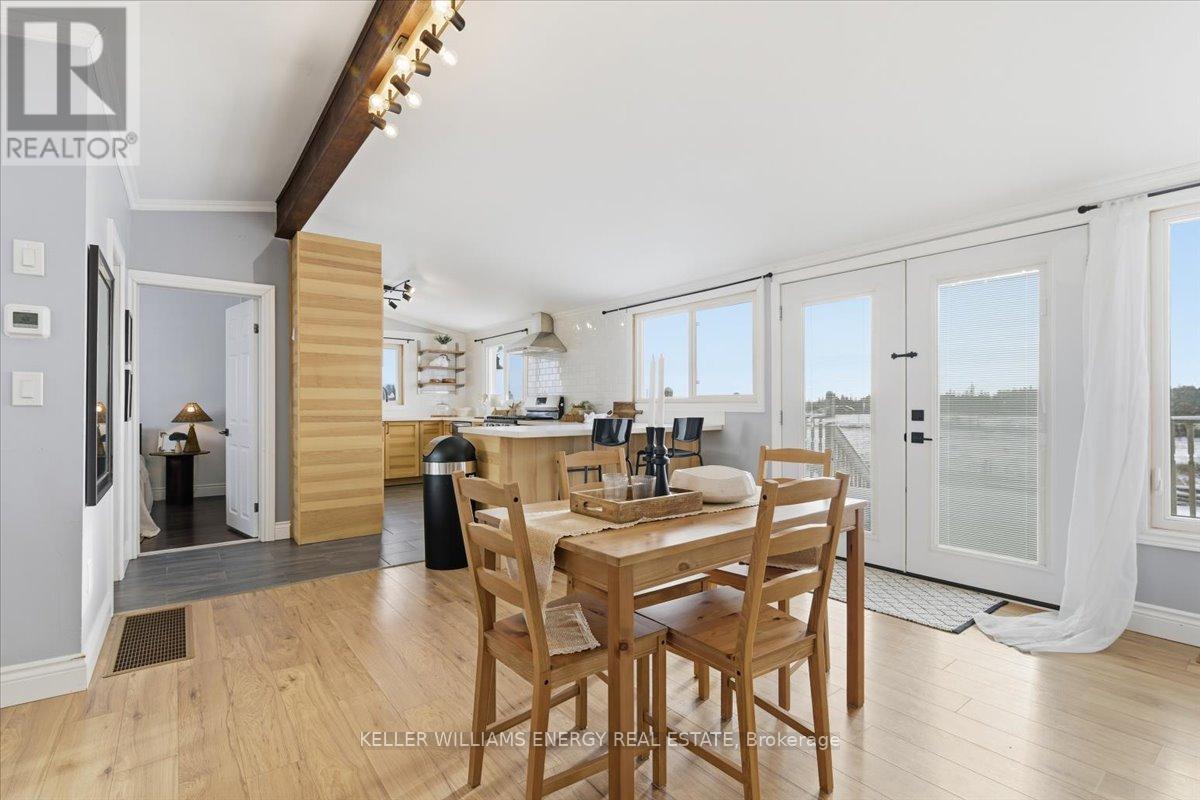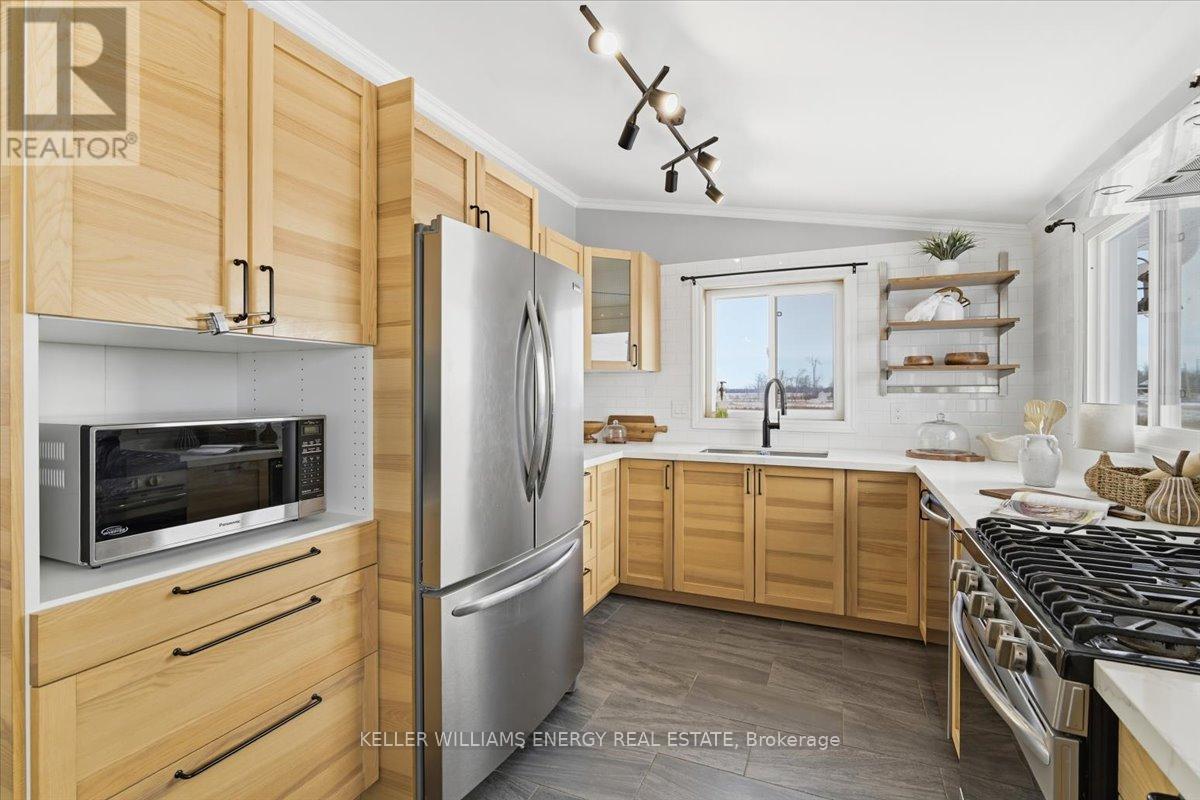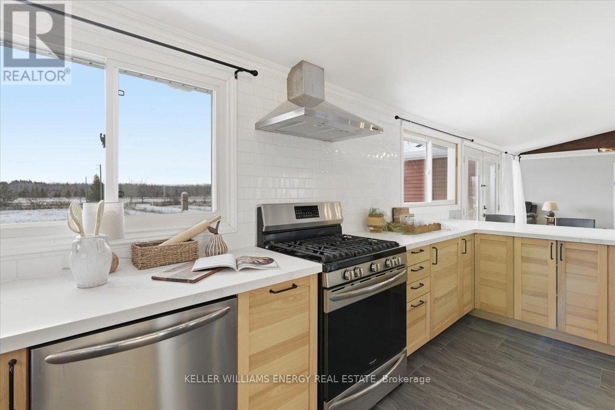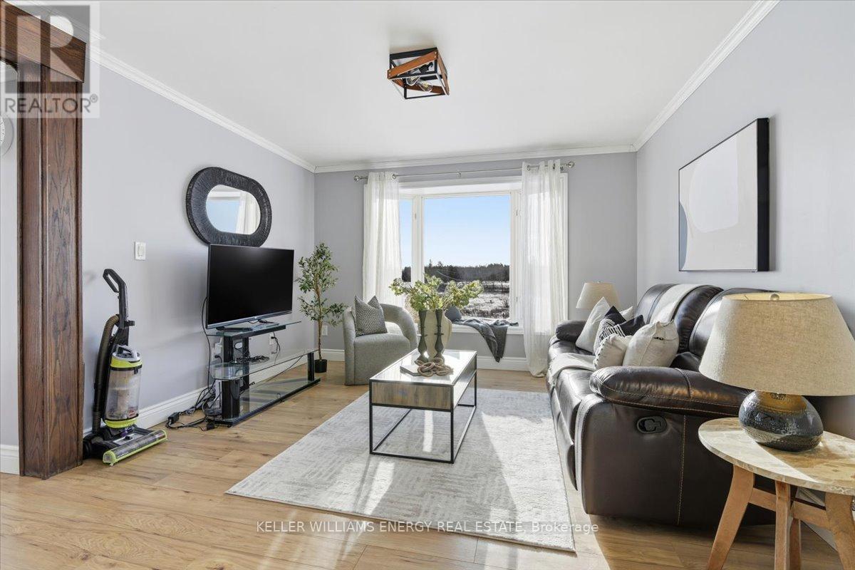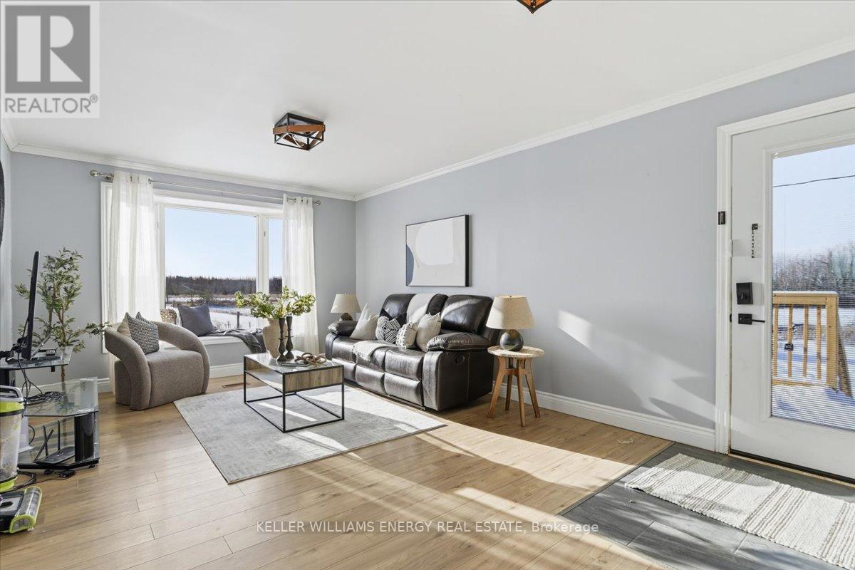 Welcome to your private escape, 177 acres of rolling rural beauty wrapped around a fully renovated, move in ready raised bungalow. The approach sets the tone: a sprawling new 32 foot front deck invites you to slow down, breathe in the countryside, and enjoy the views before you even step inside. The main floor is bright and airy, featuring engineered hardwood throughout with no carpet in sight and accented by stunning exposed beams that add character and warmth. Sunlight pours through the many windows, illuminating the open concept living and dining areas. The kitchen is an absolute standout, offering fresh white countertops, a classic subway tile backsplash, stainless steel appliances, a gas stove, and plenty of cupboard space for all your culinary ambitions. From the dining room, walk out to the backyard deck and take in the sweeping landscape that surrounds you. Two comfortable bedrooms and a stylish 4 piece bathroom complete the main level. Downstairs, the finished basement features modern vinyl flooring and a cozy rec room that offers the perfect spot for relaxing evenings. You will also find two additional bedrooms and a convenient 3-piece bath, making the lower level ideal for guests, teens, or comfy movie nights. Whether you are you're dreaming of hobby farming, privacy, or simply room to roam, this remarkable property offers peaceful living and true rural serenity. With three road frontages and an unbeatable location just 30 minutes from Lindsay and 30 minutes to Orillia, it is the perfect place to settle in, slow down, and enjoy the quiet countryside lifestyle. (id:61423)