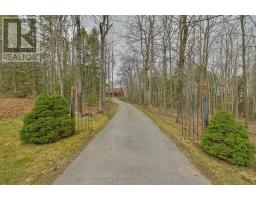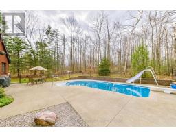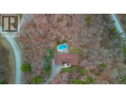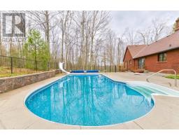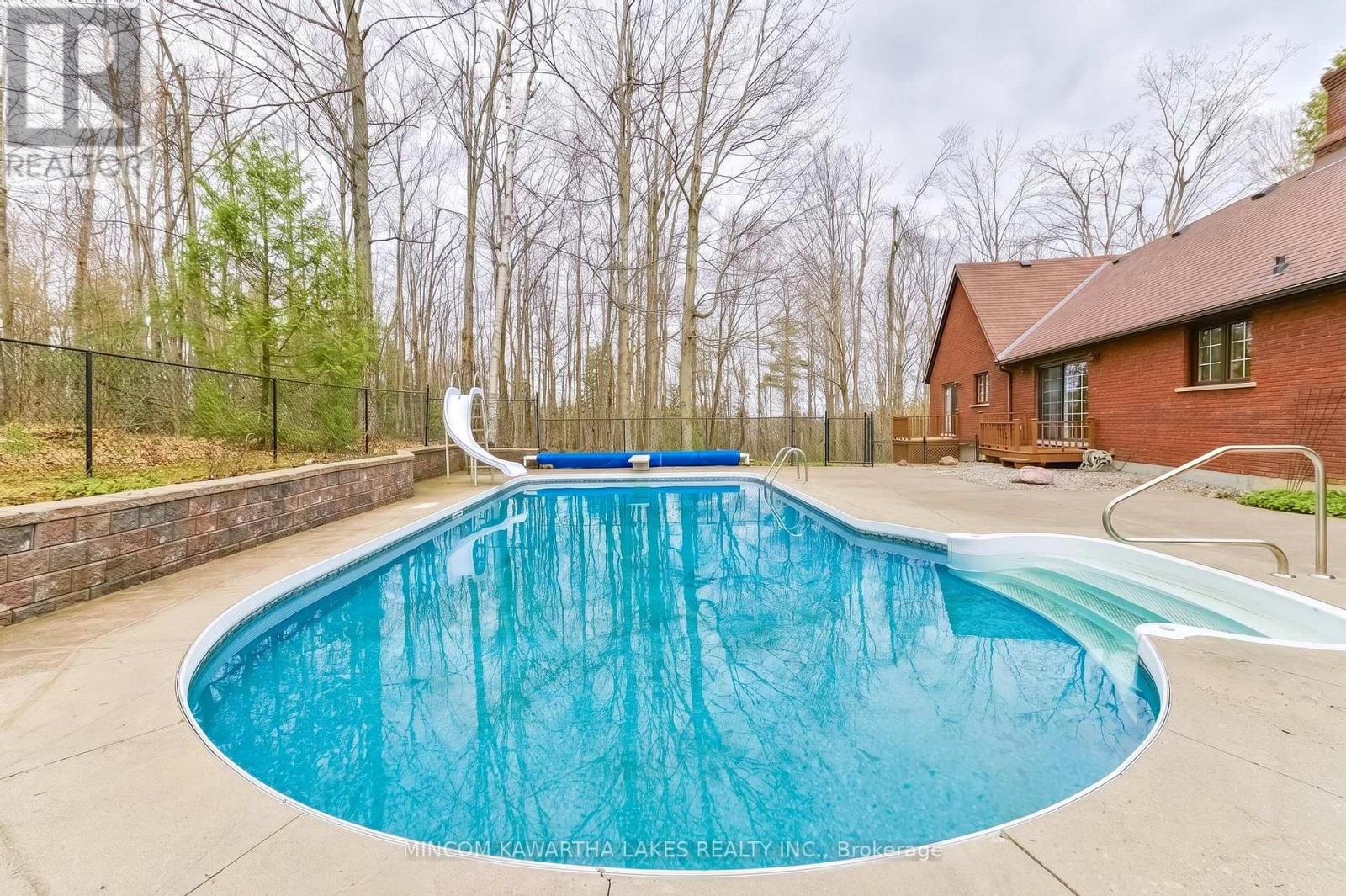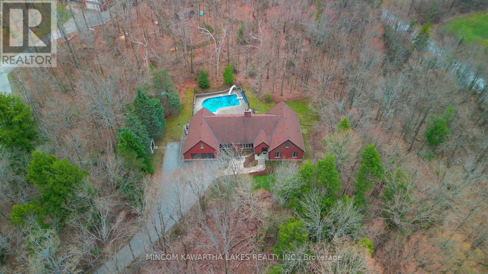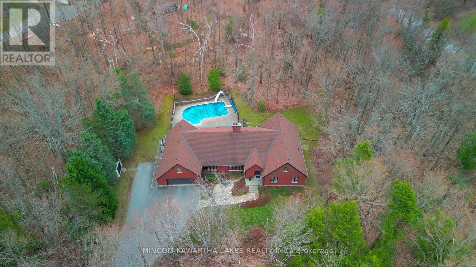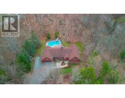 Nestled within the prestigious Pine Hill Estates, this custom-built executive bungalow is set on a breathtaking 2.12-acre maple-forested property. Surrounded by mature trees and natural beauty, this private estate offers a rare blend of luxury, tranquility, and convenience-just minutes to Peterborough and approximately 90 minutes to the GTA. .Positioned on an ultra-quiet cul-de-sac and accessed by a long, tree-lined driveway, the home makes a striking first impression. Designed for elegant, single-level living, the layout is ideal for all stages of life, offering both comfort and sophistication. Inside, expansive windows including multiple bay features flood the home with natural light while capturing stunning forest views from nearly every room. Rich hardwood flooring and generously sized principal spaces create a warm yet refined atmosphere throughout.The main level features a spacious eat-in kitchen, formal living and dining rooms, and a welcoming family room with a wood-burning fireplace-perfect for both everyday living and entertaining. Three well-appointed bedrooms are located on the main floor, including a generous primary suite with a private ensuite and walkout to a secluded deck overlooking the trees and pool. An additional bedroom on the lower level provides flexibility for guests or extended family.The fully finished lower level offers exceptional additional living space, complete with a large recreation area, pool table room, multiple workshop spaces, and ample storage-ideal for hobbyists or multi-generational living.Outdoors, the inground pool with slide is perfectly set within the natural landscape, creating a private, resort-like setting surrounded by forest. The attached double car garage and expansive driveway provide plenty of parking for family and guests.A rare opportunity to own a refined estate property in one of Bridgenorth's most desirable communities.Home inspection avail (id:61423)