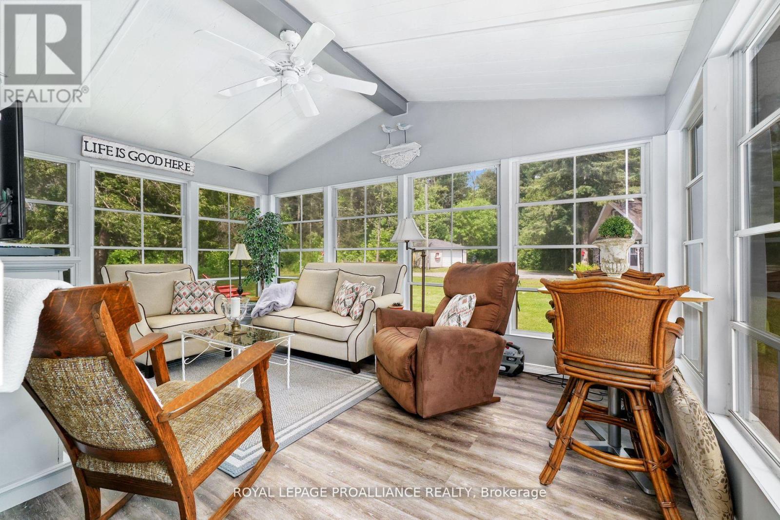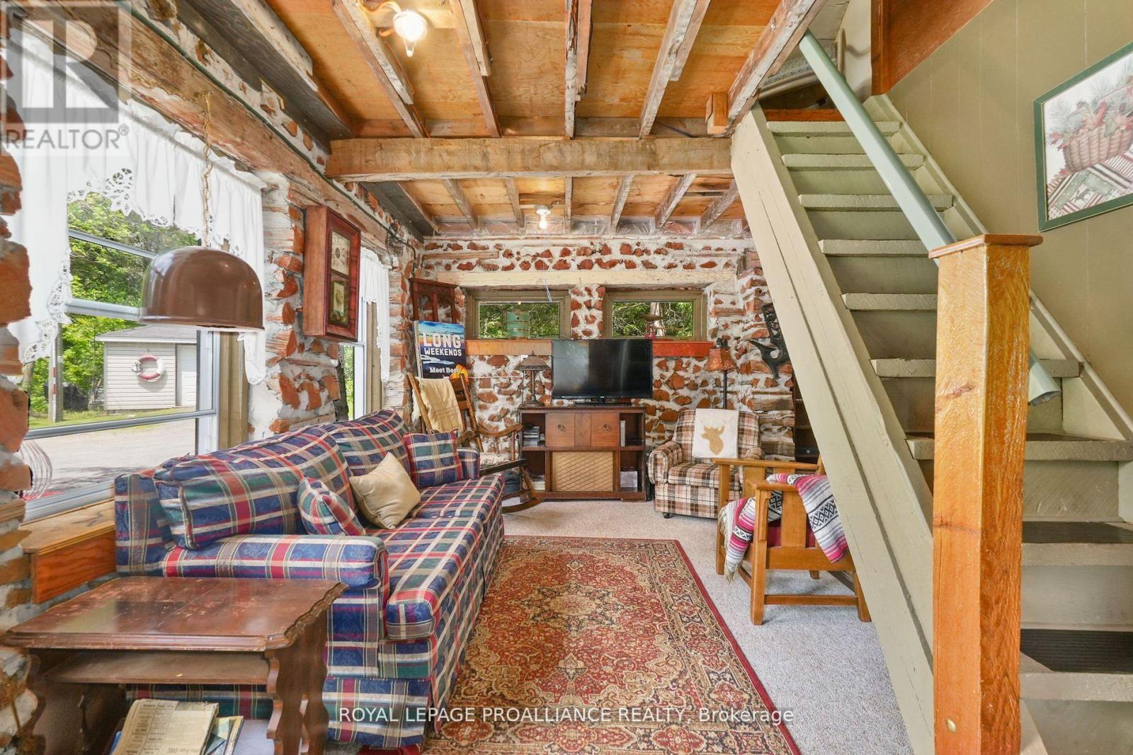 Why spend your summers in a crowded trailer park paying annual fees when you could enjoy your own waterfront retreat on leased land with Parks Canada offering a unique and affordable way to experience cottage life in a stunning natural setting? Create unforgettable family memories at this charming cottage perfectly positioned on the Trent-Severn Canal between Locks 10 and 11, just 10 minutes from the heart of Campbellford. Lovingly maintained by the same family for many years, this spacious getaway is designed for relaxing, reconnecting, and enjoying the outdoors. The main cottage features two comfortable bedrooms, a 3-piece bathroom, a cozy kitchen, and a welcoming living room with a wood stove for cooler evenings. A bright sunroom provides the perfect spot for board games, family dinners, or quiet mornings with coffee. Recent updates include new flooring in the bathroom and sunroom, refreshed painting, a new deck, and a newer roof. One of the property's standout features is the separate rustic cabin, complete with its own wood stove and space to sleep up to seven guests ideal for kids, cousins, or visiting friends who want their own adventure space. A garage and woodshed provide excellent storage and added convenience. Set on an expansive, private lot with no close neighbours, there's plenty of room for kids to play, explore, and enjoy the freedom of cottage life. With direct waterfront access, boating and fishing are right at your doorstep. Spend your evenings relaxing in the hot tub, roasting marshmallows around the fire, or sitting on the deck watching boats glide by. Nearby Ferris Provincial Park and local trails offer even more opportunities for hiking, biking, and nature walks. Offered fully furnished and ready to enjoy. **some areas have been freshly painted and do not show in the current photos attached** (id:61423)