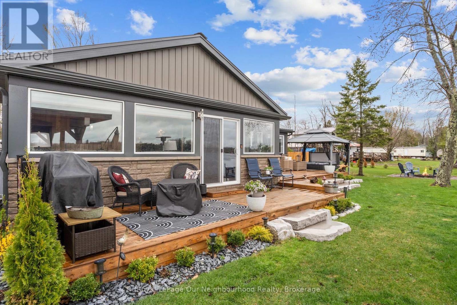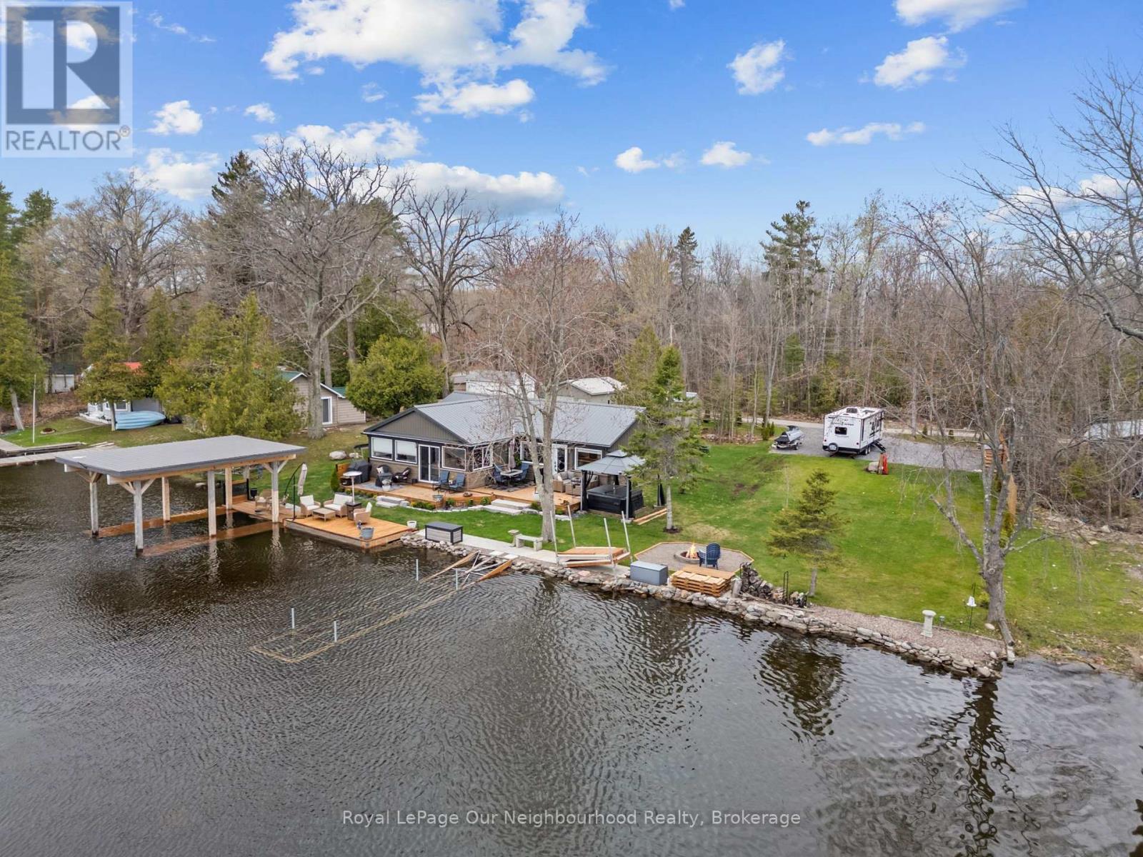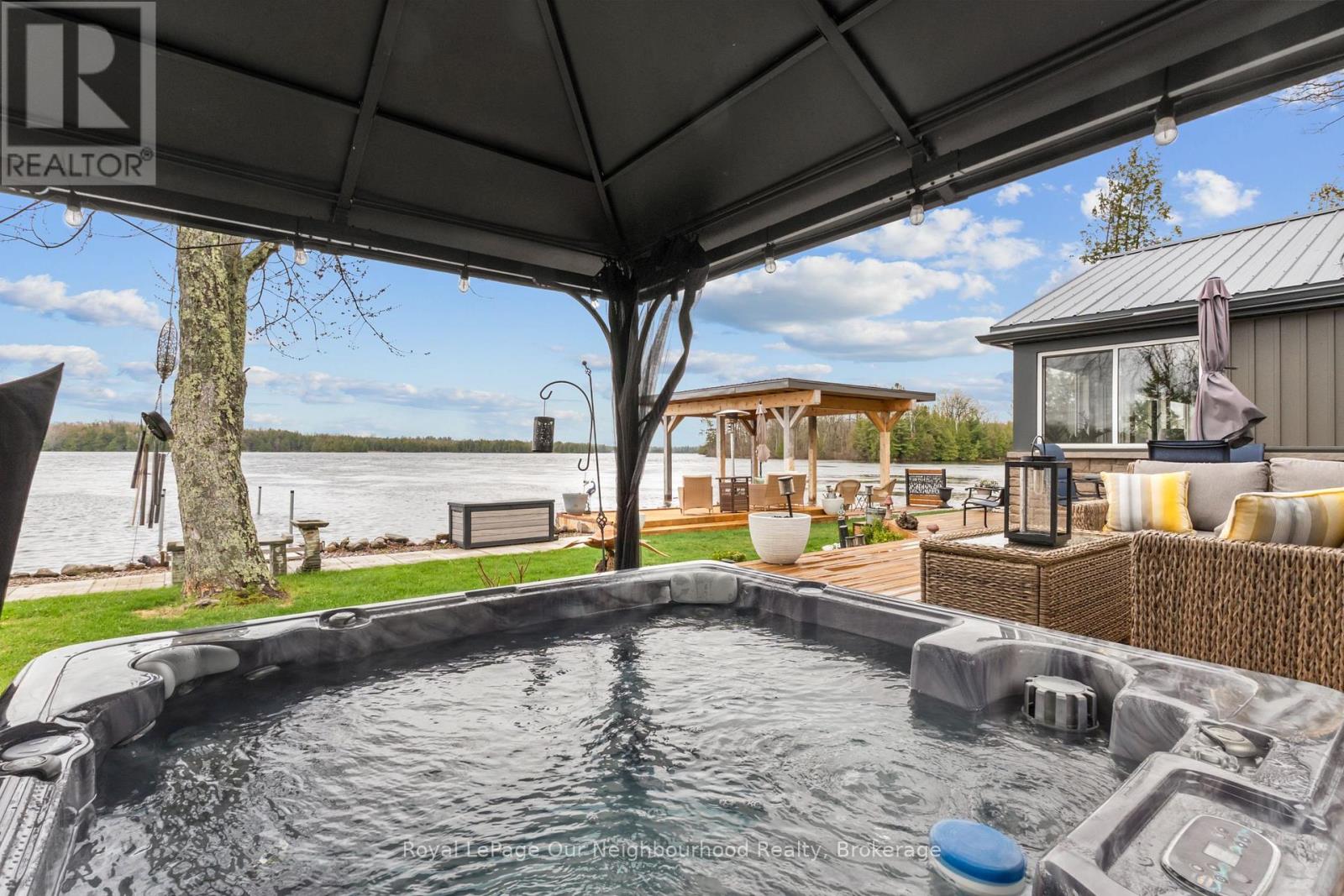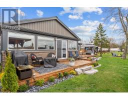 Nothing left to do but settle in and enjoy summer at this fully renovated waterfront property. Offering approximately 147' of frontage on the Trent River, this home features calming water views from the open-concept kitchen, dining area, and spacious living room, with a beautiful treed backdrop across the water. The stunning primary suite is a true retreat with a 3-piece ensuite, large walk-in closet with laundry, and a walkout to the deck for quiet evenings. A second bedroom and 3-piece bath provide a comfortable space for guests. Outside, unwind in the hot tub or relax in the sun on the new decks. Keep your boat tied at the dock or kept in the covered slip for tours up and down the Trent System. A second driveway leads to an RV parking pad complete with 30-amp hydro and water hookup. Get a head start on summer, this property is ready to impress. (id:61423)