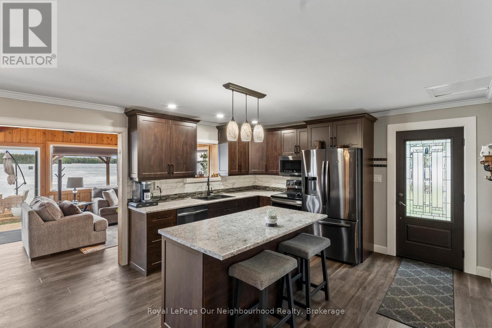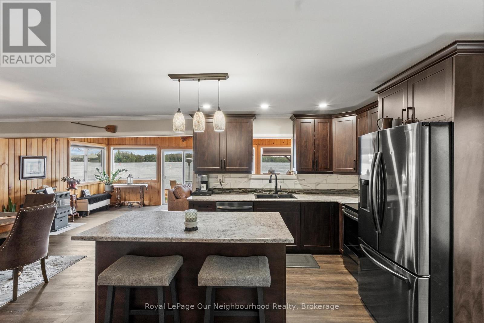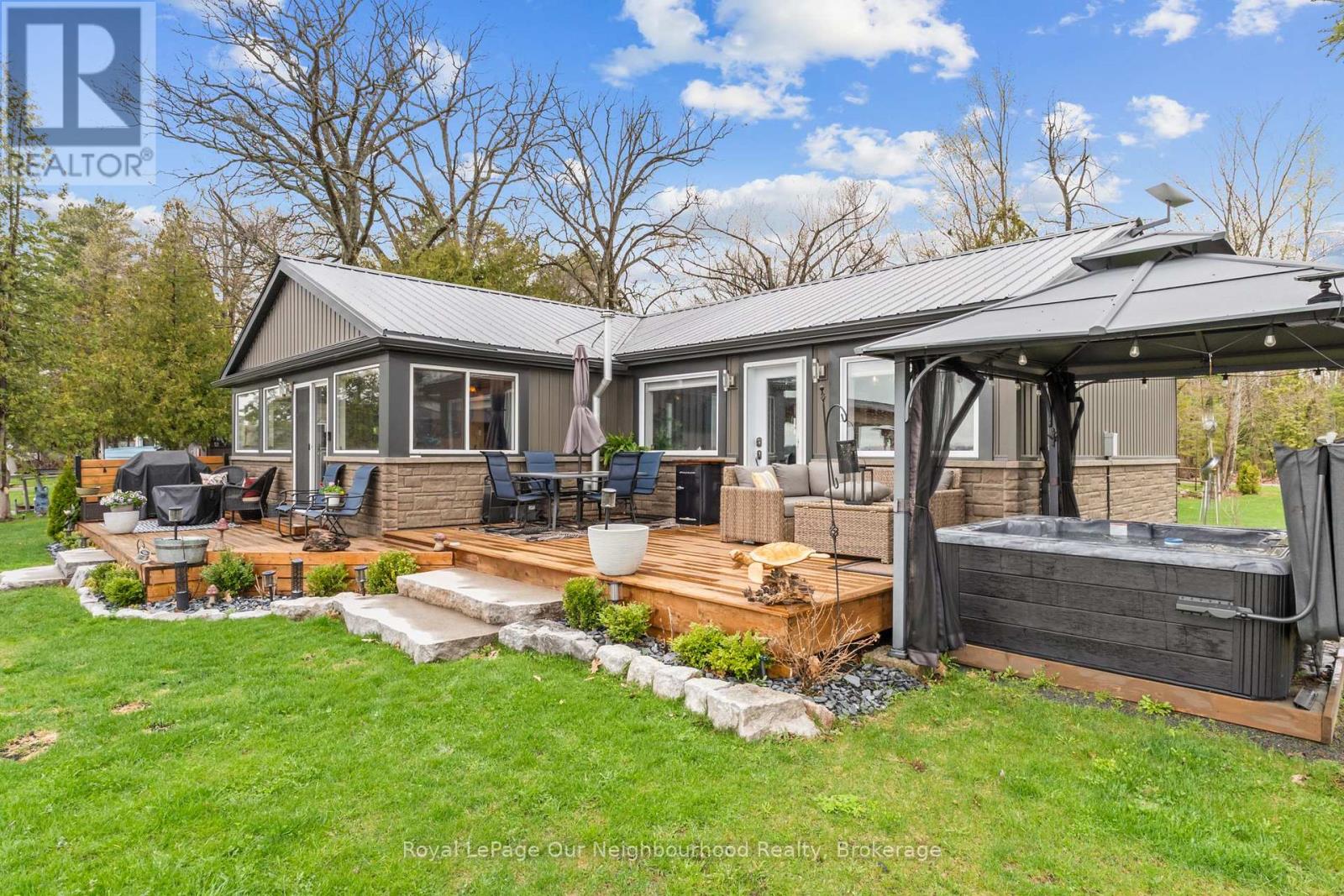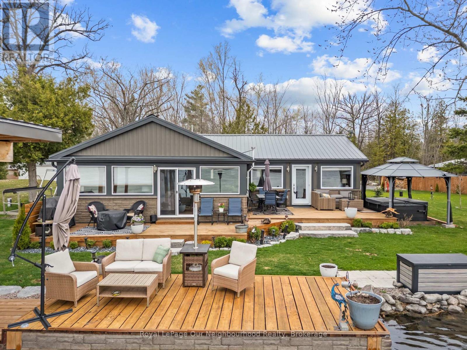 Nothing left to do but settle in and enjoy summer at this fully renovated waterfront property. Offering approximately 147' of frontage on the Trent River, this home features calming water views from the open-concept kitchen, dining area, and spacious living room, with a beautiful treed backdrop across the water. The stunning primary suite is a true retreat with a 3-piece ensuite, large walk-in closet with laundry, and a walkout to the deck for quiet evenings. A second bedroom and 3-piece bath provide a comfortable space for guests. Outside, unwind in the hot tub or relax in the sun on the new decks. Keep your boat tied at the dock or kept in the covered slip for tours up and down the Trent System. A second driveway leads to an RV parking pad complete with 30-amp hydro and water hookup. Get a head start on summer, this property is ready to impress. (id:61423)