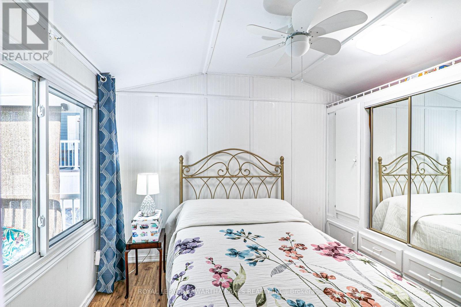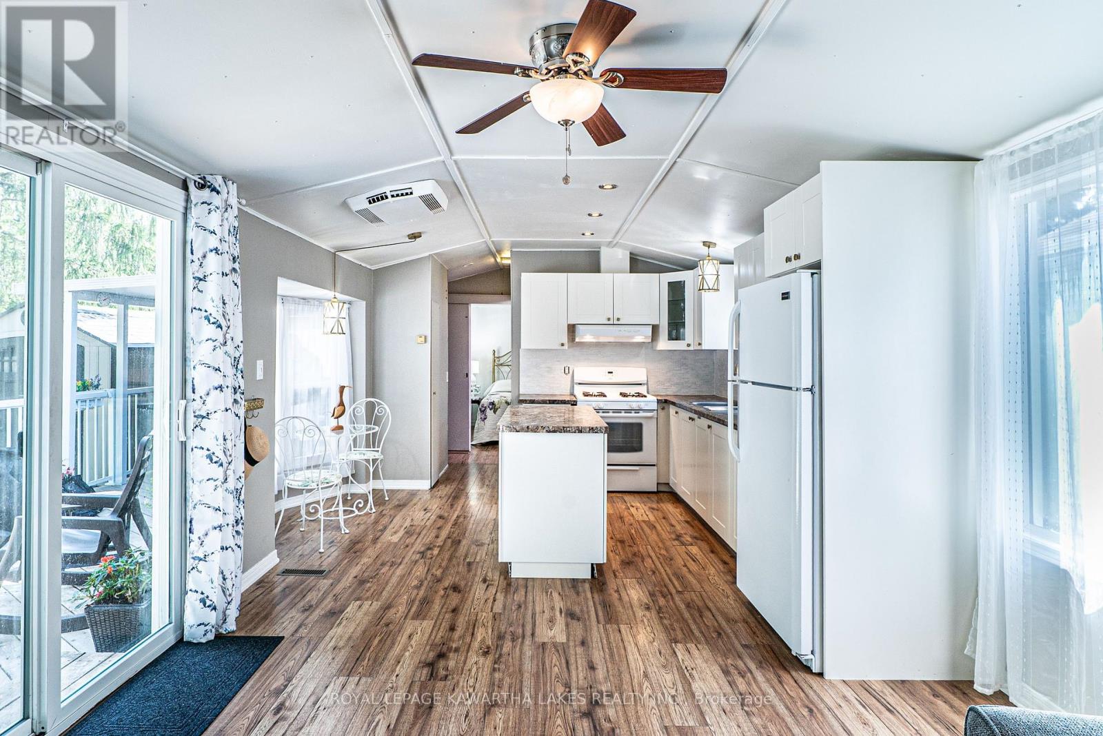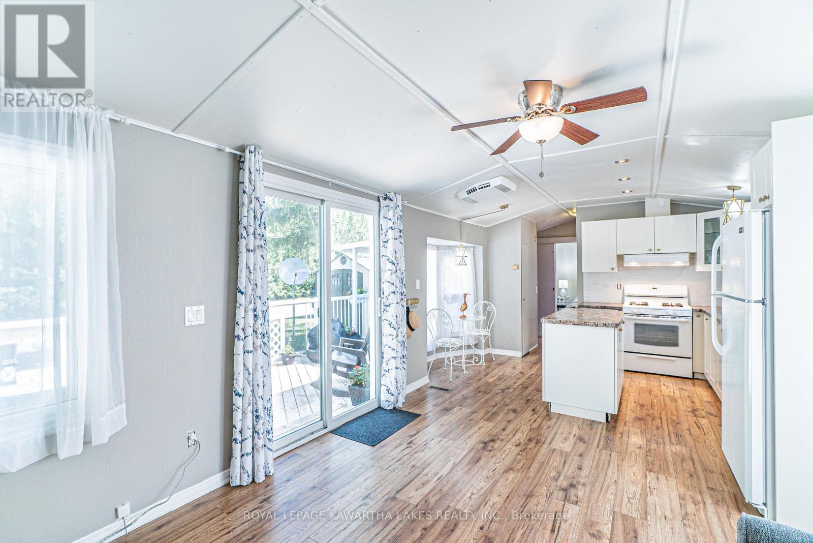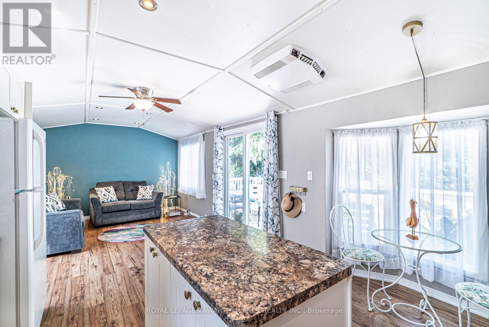Enjoy carefree seasonal living (May to October) at the sought after Nestle in Resort in Dunsford! This well maintained 1 bedroom, 1 bathroom trailer offers a cozy eat-in kitchen with centre island, a bright living room, and plenty of outdoor space with a covered porch and a spacious deck, perfect for relaxing or entertaining. Nestle In Resort offers endless amenities including a heated pool, children's wading pool, boat docks (extra fee), fishing, jumping pillow, beach volleyball, basketball court, horseshoe pit, rec hall, and more. A fantastic way to enjoy the warm weather seasons! (id:61423)