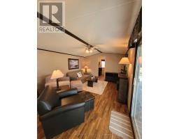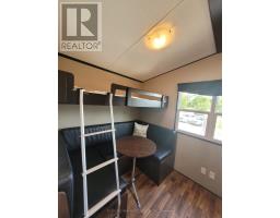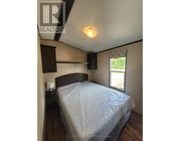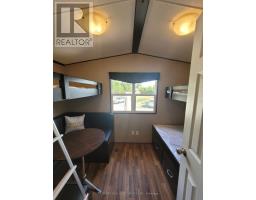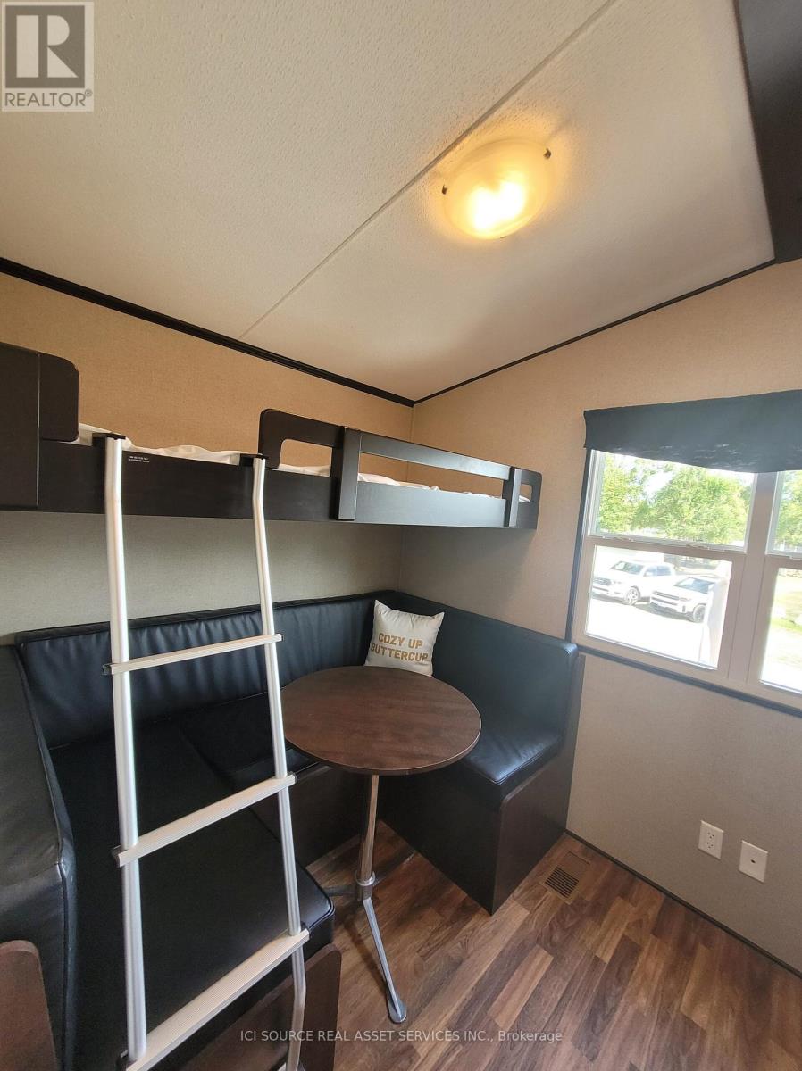 This 2015 Northlander Poplar is the perfect family getaway, offering stunning lake views without the premium cost of a direct lakefront site. Thoughtfully designed for young families, it features a charming bunk room with a cozy seating area which is ideal for board games, crafts, or an extra sleeping space when needed. Enjoy a spacious sunroom with stunning lake views and an extended sun-filled deck. Located directly across from the playground, pool, and boat launch, this cottage truly has it all. Move-in ready and fully equipped, it includes everything you need from kitchenware and bedroom/living room furniture to a dining table in the sunroom and even a fireplace. Just pack your suitcase and start making memories! *For Additional Property Details Click The Brochure Icon Below* (id:61423)