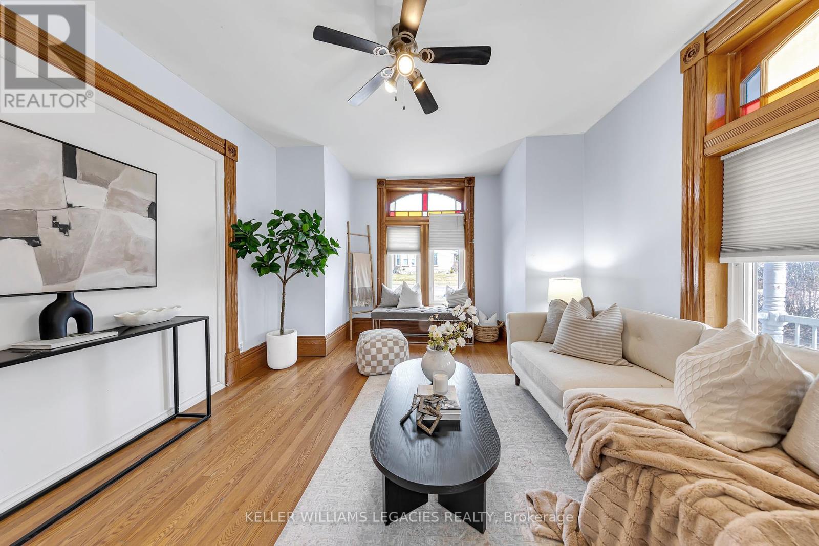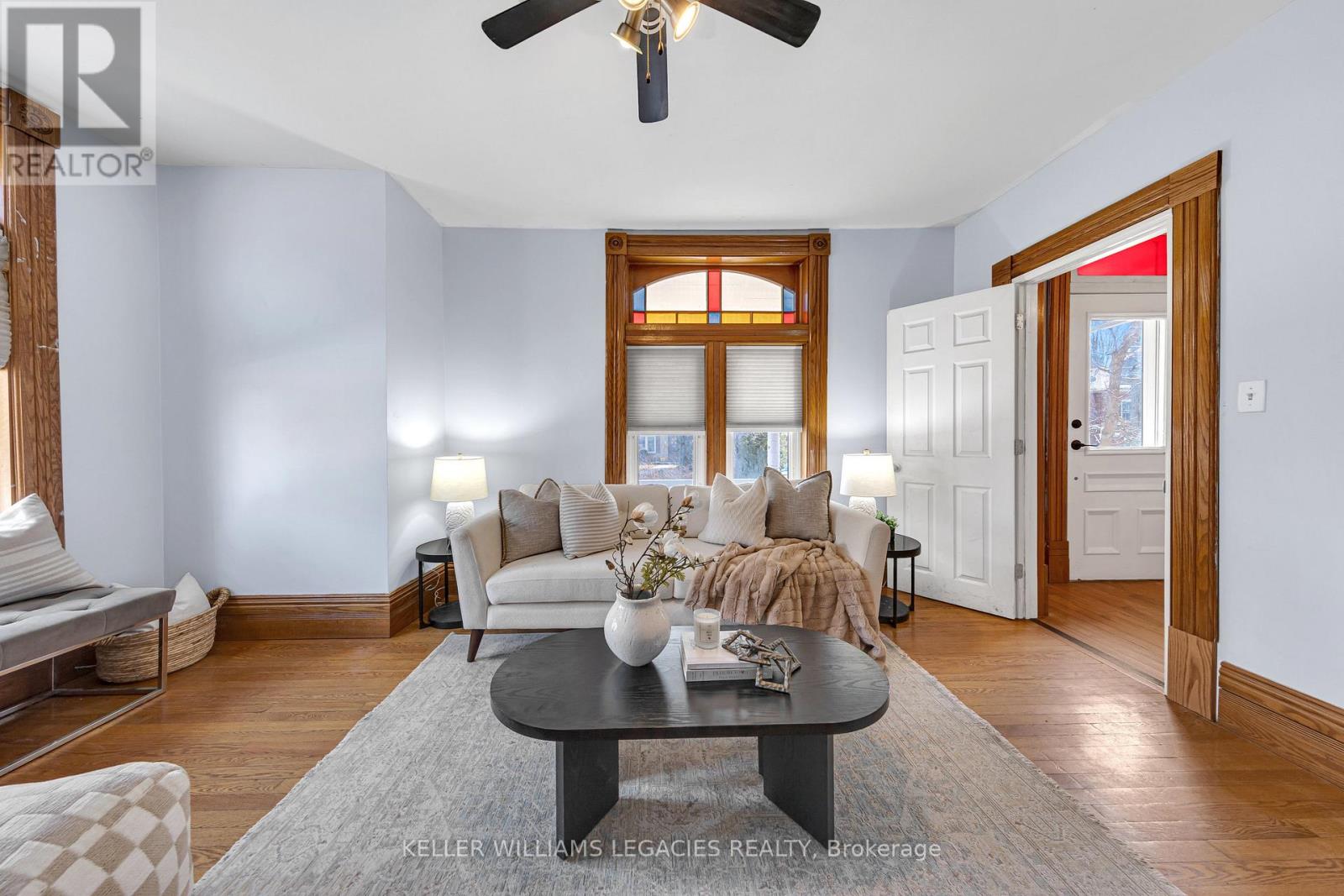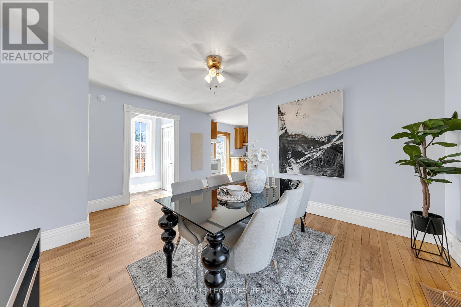 This beautifully maintained 2-storey brick home blends historic character with modern functionality. The main unit offers over 1,500 sq ft of living space, ideal for families, professionals, or students. Featuring 4 generously sized bedrooms (3 upstairs, 1 on the main floor), a large 5-piece bathroom on the second level, plus a convenient 2-piece powder room on the main. Enjoy the warmth of hardwood floors, stained glass windows, copper ceiling tiles, and original gingerbread trim on the covered front veranda. The hickory kitchen with island and walk-out to the backyard deck provides excellent prep and entertaining space, complemented by a formal dining room. Located in a well-connected area just 10 minutes to Trent University and Fleming College, this home is perfect for student housing or families seeking comfort and charm. With 5+ parking spaces, ample storage in the basement, and proximity to transit, shopping, parks, and highway access this is a unique rental opportunity you dont want to miss. Students welcome! (id:61423)
