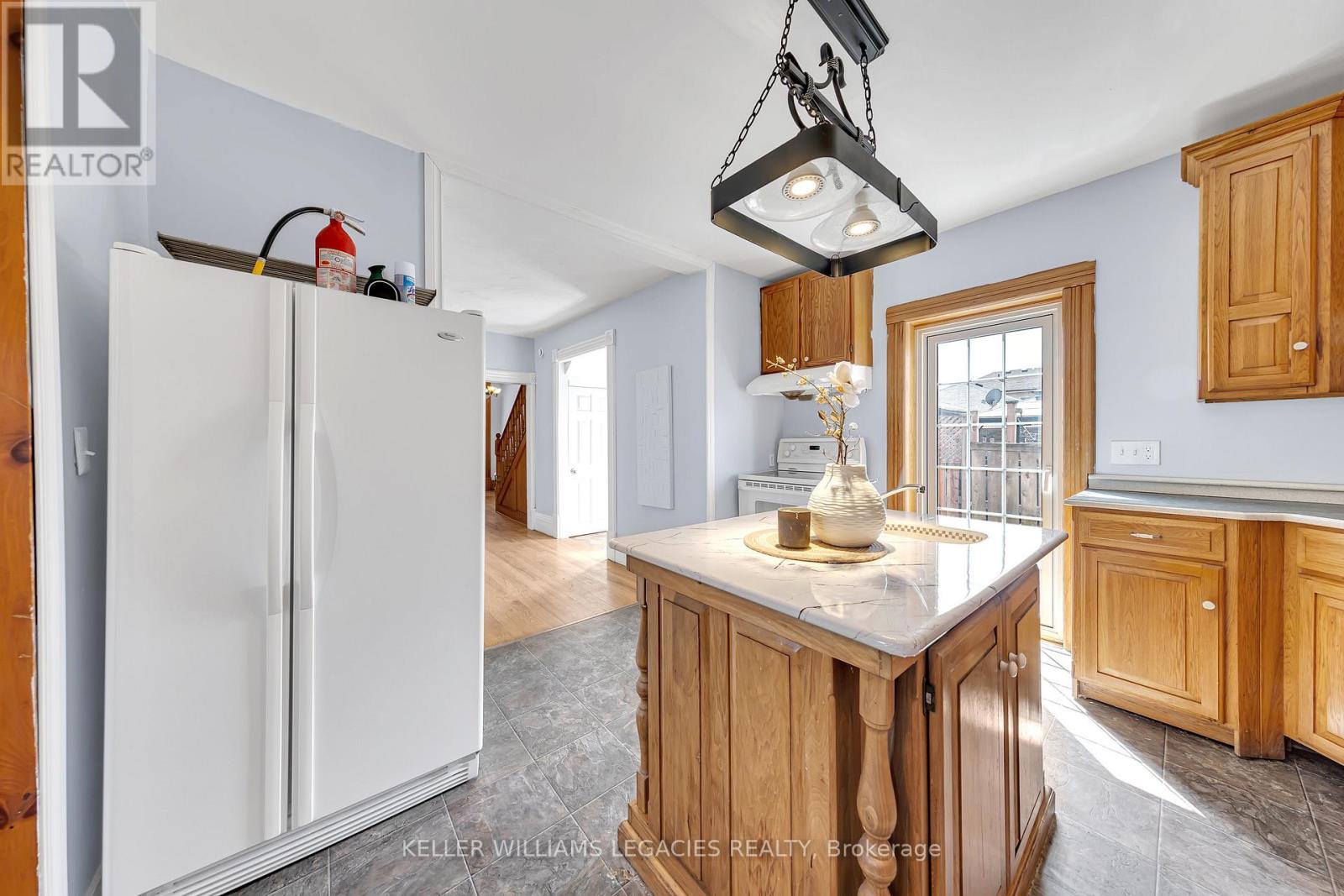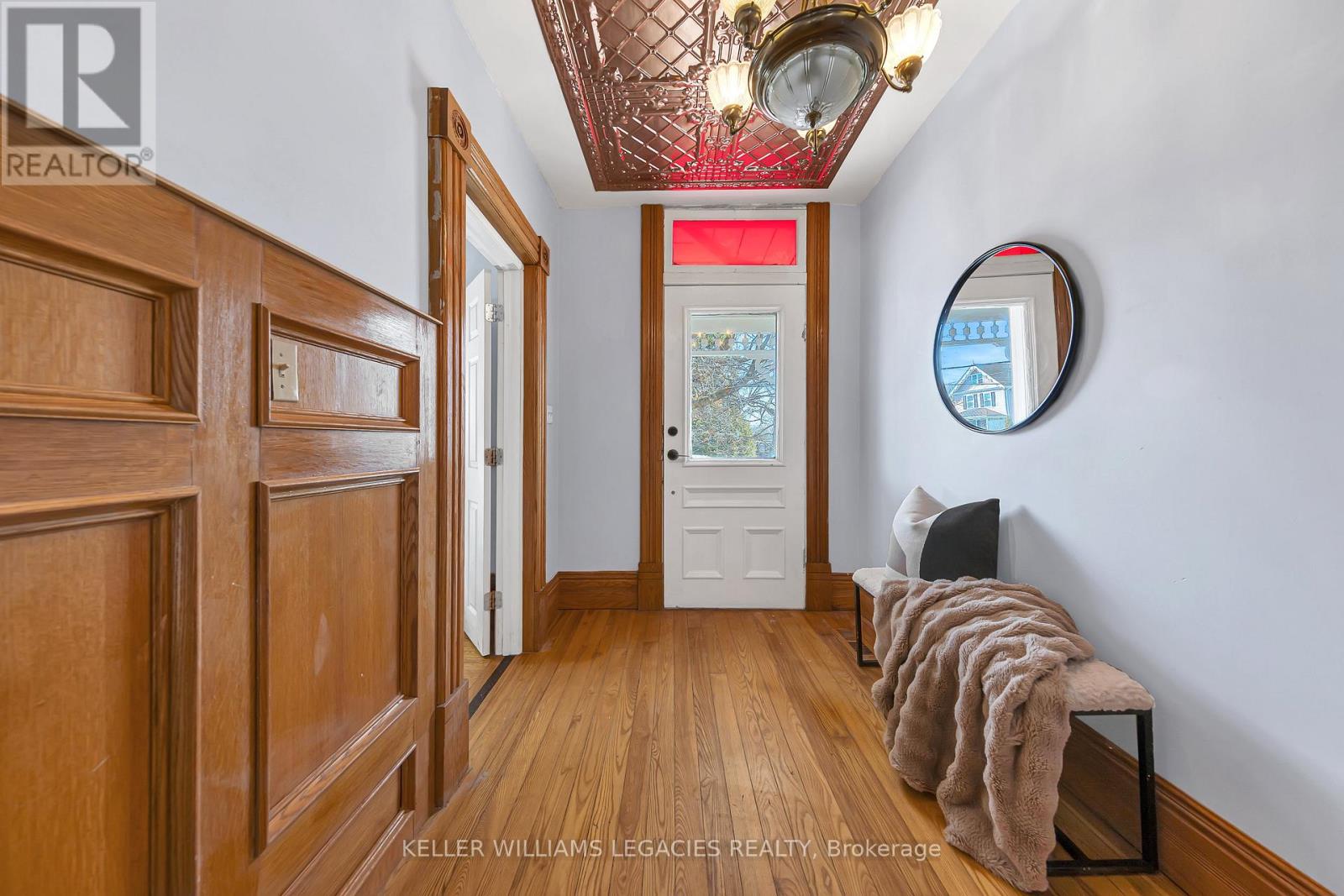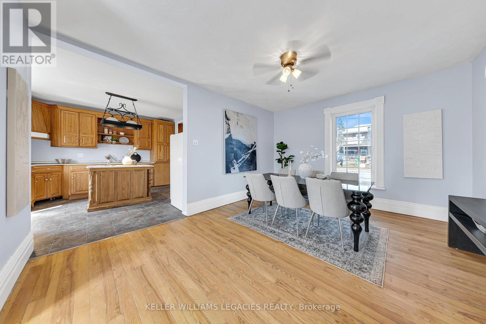 This beautifully maintained 2-storey brick home blends historic character with modern functionality. The main unit offers over 1,500 sq ft of living space, ideal for families, professionals, or students. Featuring 4 generously sized bedrooms (3 upstairs, 1 on the main floor), a large 5-piece bathroom on the second level, plus a convenient 2-piece powder room on the main. Enjoy the warmth of hardwood floors, stained glass windows, copper ceiling tiles, and original gingerbread trim on the covered front veranda. The hickory kitchen with island and walk-out to the backyard deck provides excellent prep and entertaining space, complemented by a formal dining room. Located in a well-connected area just 10 minutes to Trent University and Fleming College, this home is perfect for student housing or families seeking comfort and charm. With 5+ parking spaces, ample storage in the basement, and proximity to transit, shopping, parks, and highway access this is a unique rental opportunity you dont want to miss. Students welcome! (id:61423)